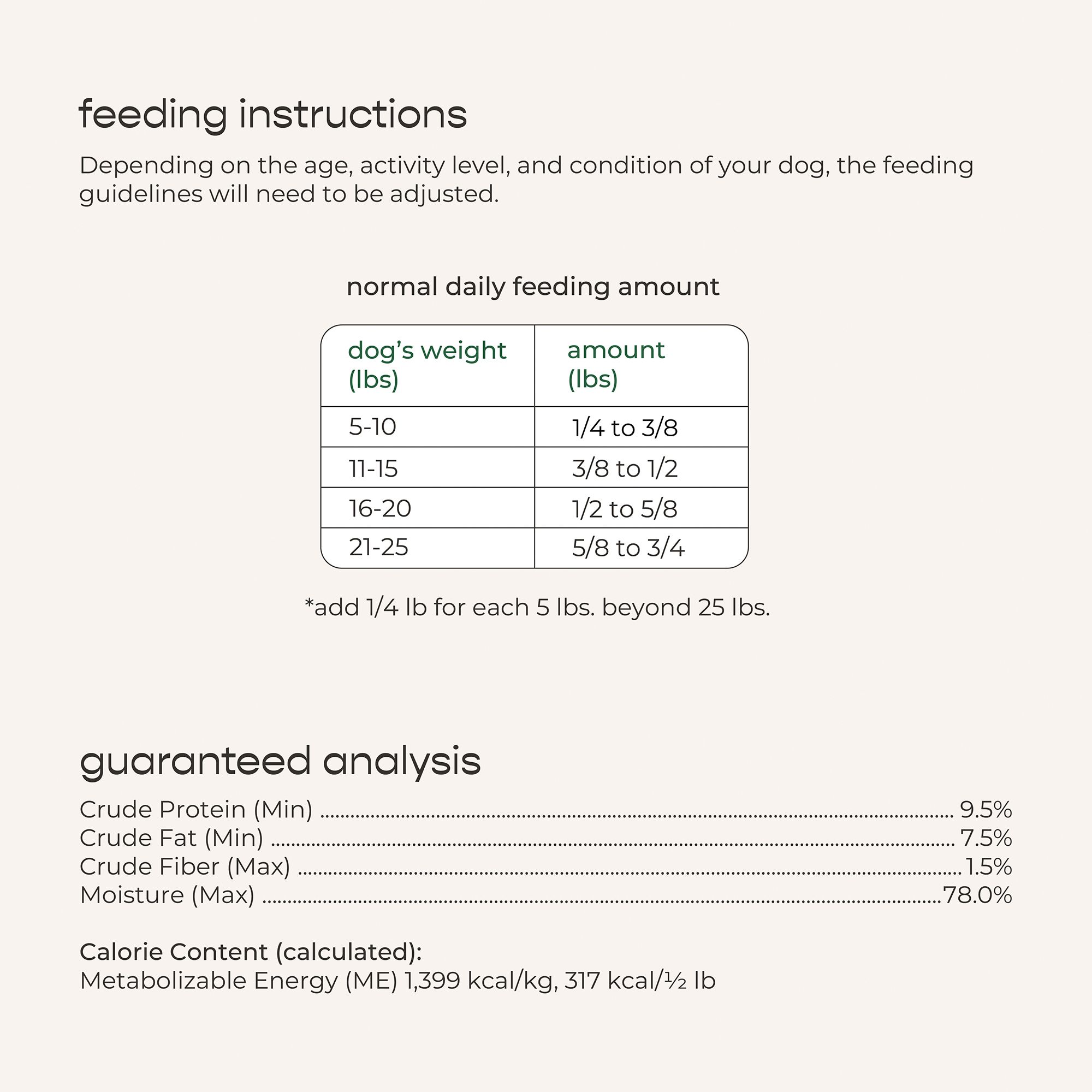 Gently steamed natural chicken & turkey, accented with pumpkin and antioxidant-rich fruits & vegetables for smaller pups. This grain-free recipe is nutritionally developed with targeted levels of protein and fat to support small dog high energy requirements.
