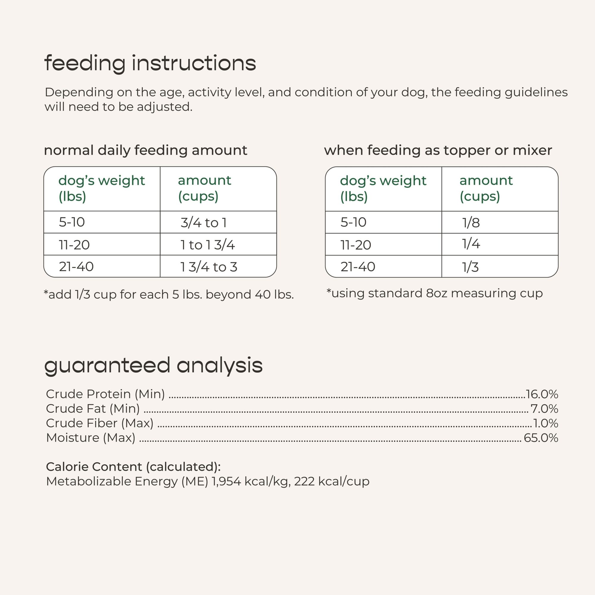Freshly Crafted in Small Batches Real Ground Chicken & Turkey Antioxidant Rich Fruit & Vegetables Fully Cooked & Ready to Serve No Added Preservatives, Meat Meals or By Product Meals Made in the USA Complete & Balanced for Adult Dogs Keep Refrigerated, Use within 5 days of opening