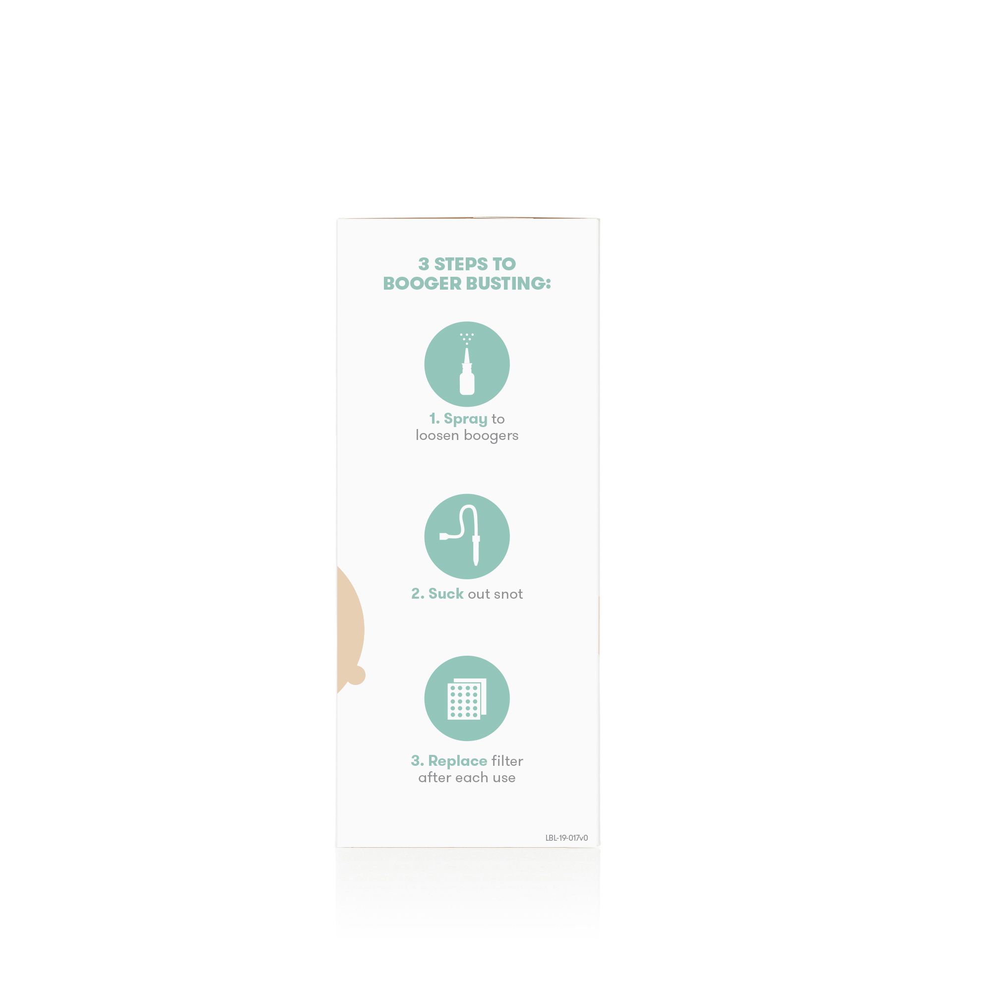 NoseFrida nasal aspirator, saline spray (20mL), and 40 hygiene filters Comfortable and non-invasive: NoseFrida creates a seal with the outside of the baby's nostril for gentle snotsucking Hygienic: disposable filters are clinically proven to prevent the transfer of mucus or bacterial germs to the snot sucker when clearing stuffy noses; replace the filter after every use Two ingredient saline: natural sea salt and purified water (20mL) Dishwasher safe It's smart, it's Swedish, it's maybe a little strange To use: place a large tube against the child's nostril (not inside), creating a seal; use a red mouthpiece to suck out snot Tips: first, spraying saline solution in each nostril will help loosen thick mucus before using NoseFrida; second, move the tube in a circular motion against the nostril—you will hear and see mucus coming out of the nose; third, change filter after each use to maintain suction