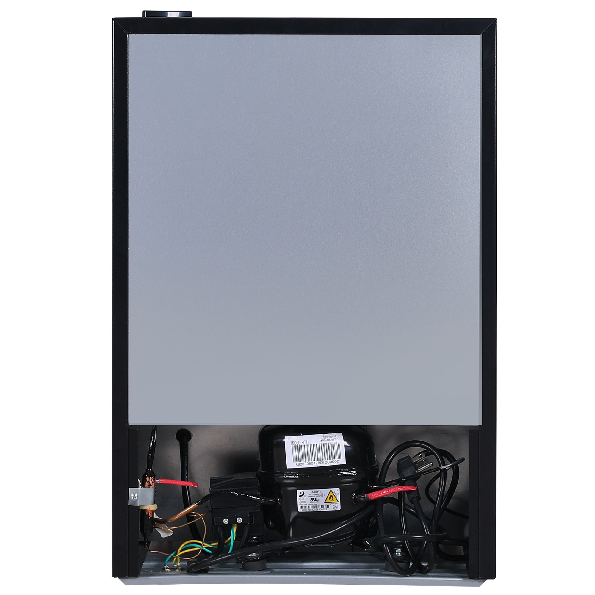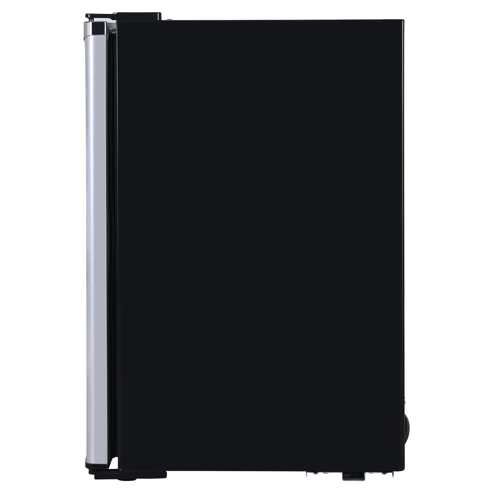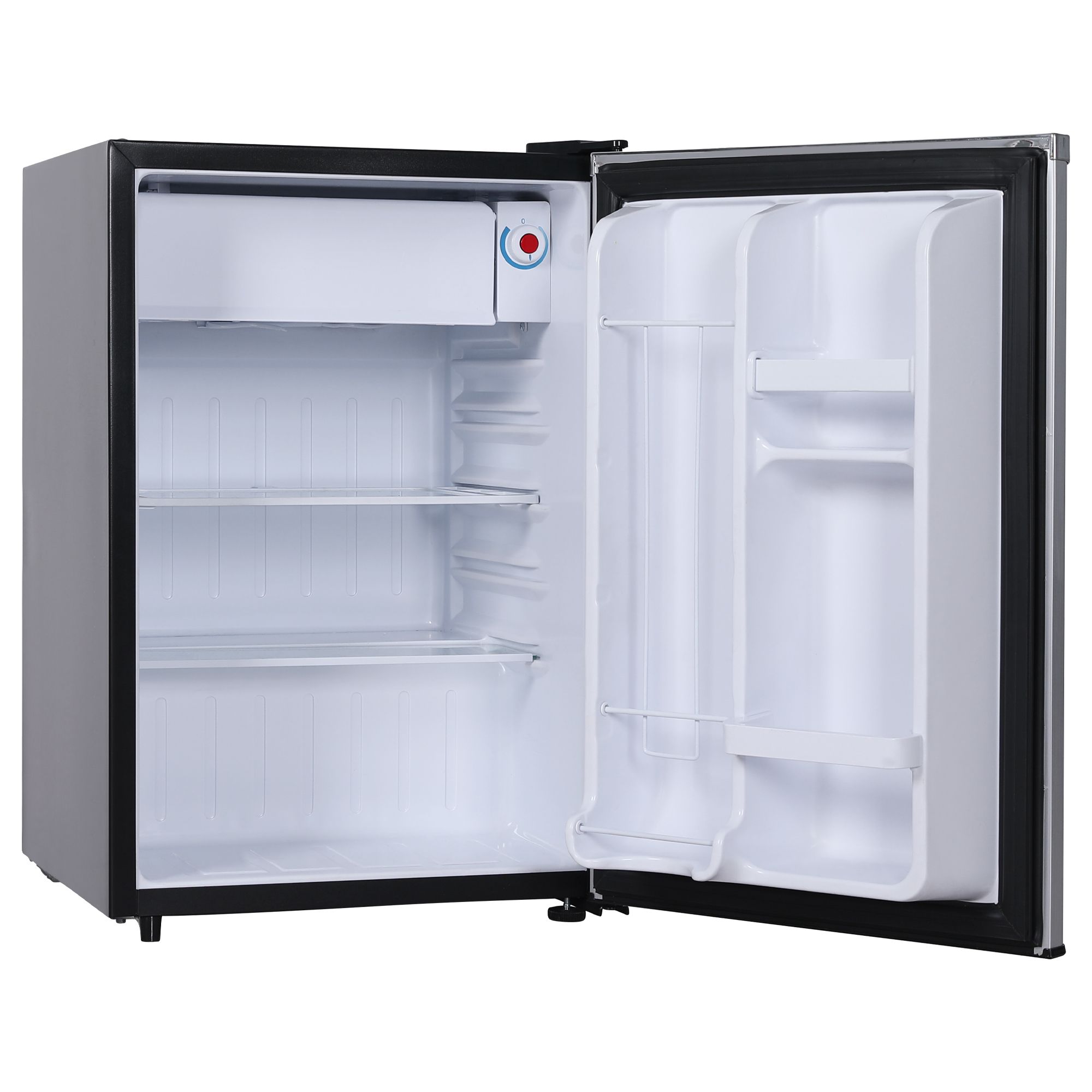 With its 2.5 cu ft capacity, this compact-size refrigerator/freezer works great for a bar area, a dorm room, or during the holidays when extra space comes in handy. The unit provides a freezer compartment with a drip tray and an ice cube tray, removable food shelves, and a soft-line door with a dairy rack, food rack, and bottle rack for keeping food and beverages organized. Its reversible stainless-steel door can be set up to open from either the left or the right side, and the unit's adjustable legs make it easy to stabilize even on an uneven surface. Other highlights include a temperature-control knob, a space-saving flush back design, an invisible door handle for a clean look, CFC-free operation, and low-energy consumption.