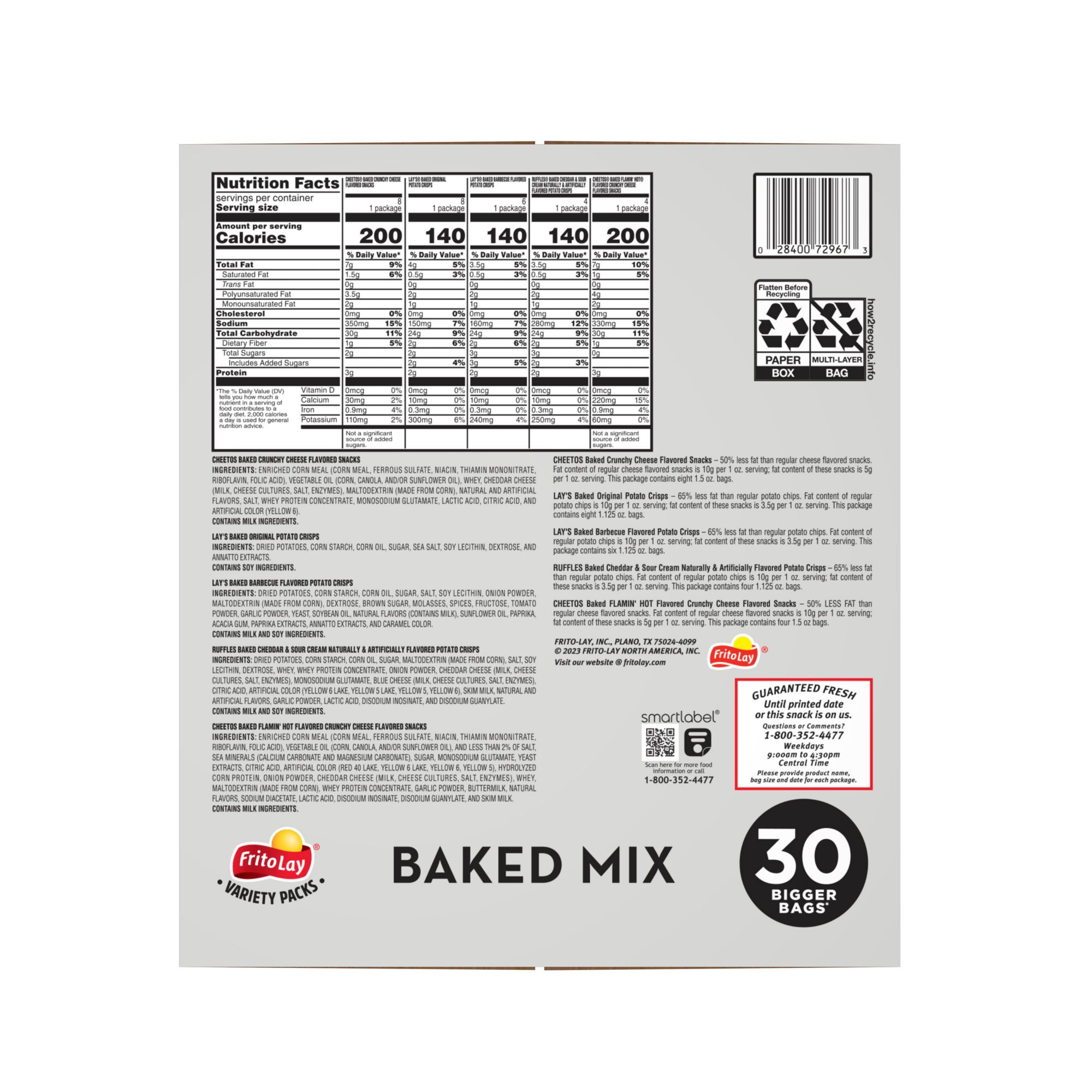 Frito Lay Variety Pack of Baked Snacks and Chips, Baked Mix, 30 ct.
