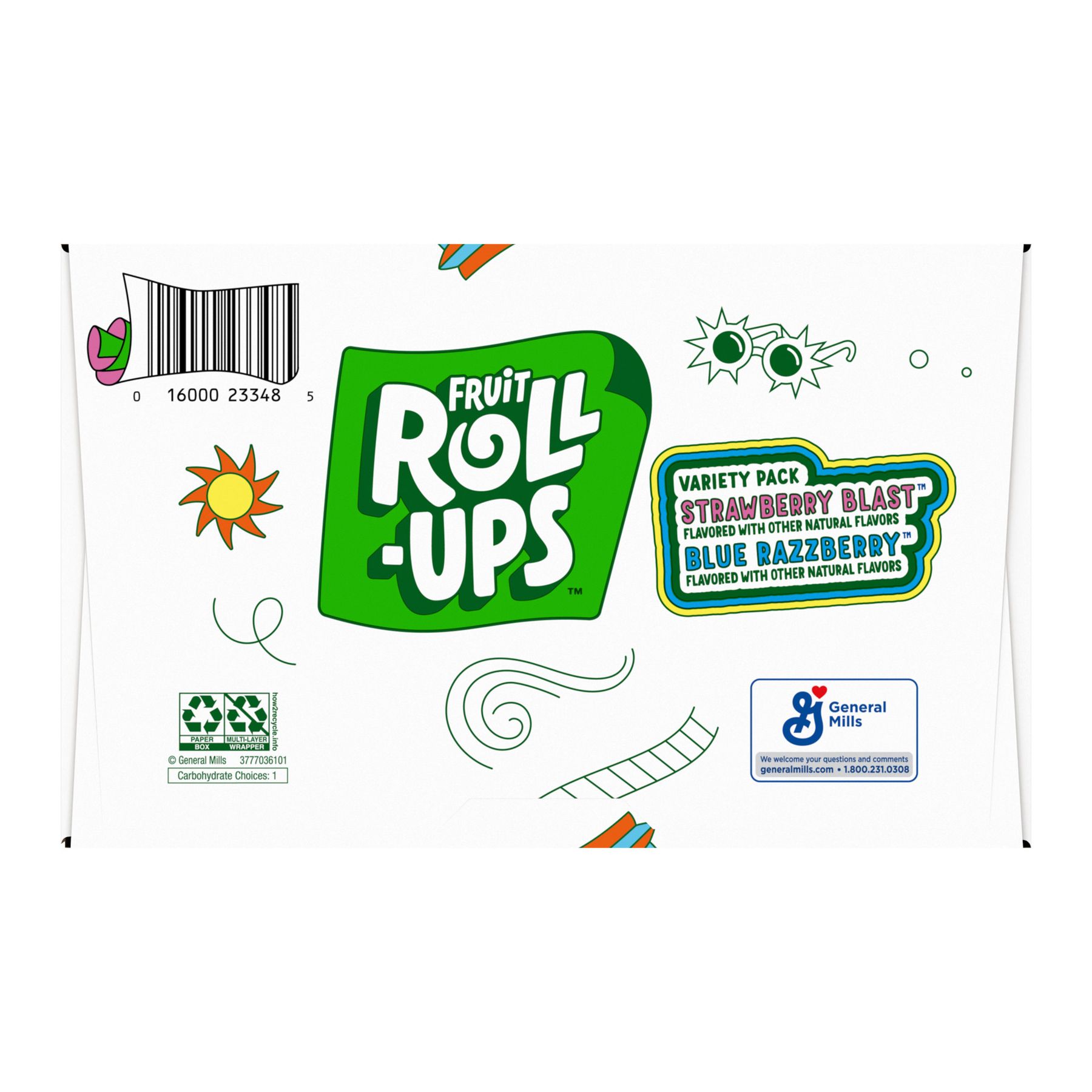 Fruit flavored snack: Fruit Roll-Ups Variety Pack featuring two sensational flavors - Blue Razzberry and Strawberry Blast
