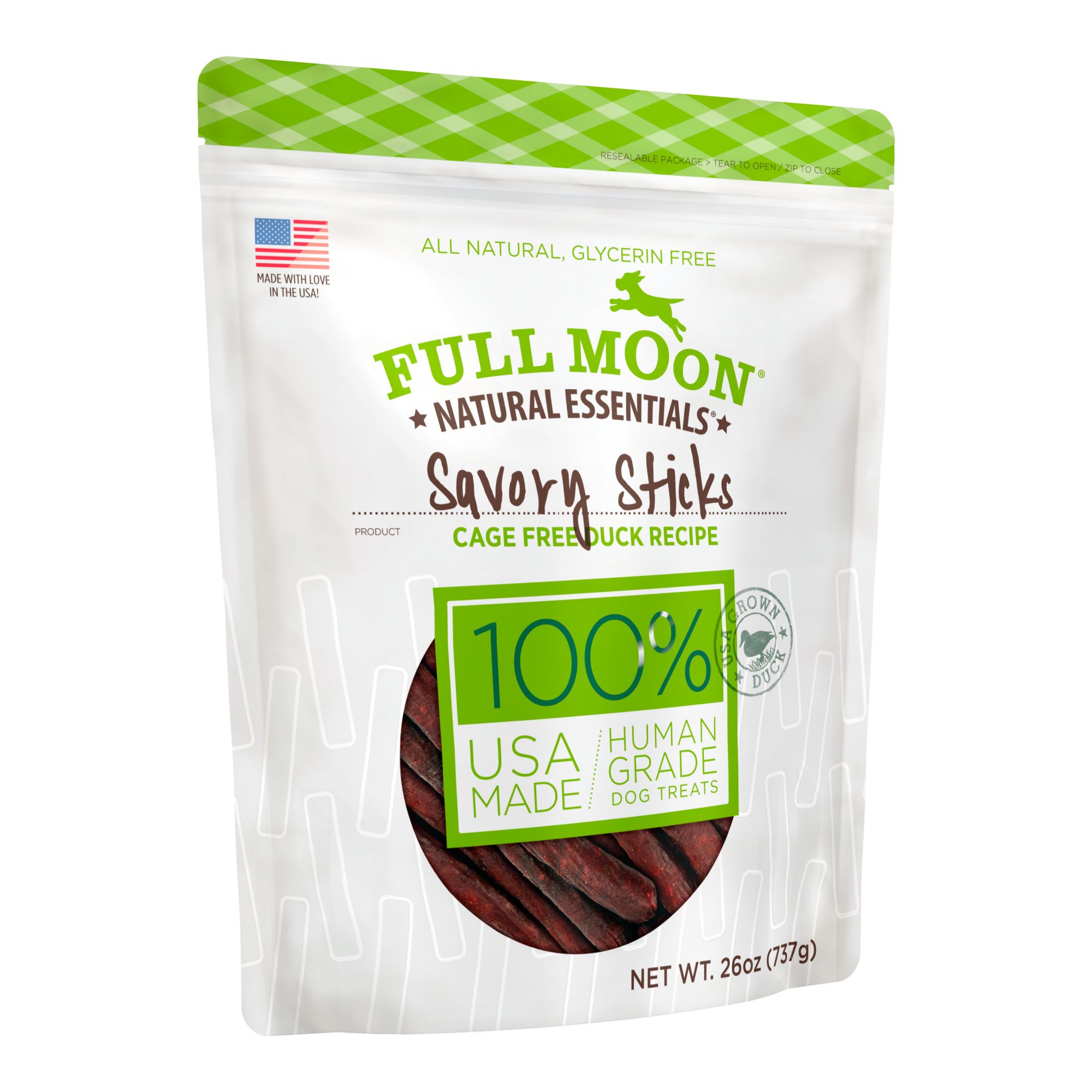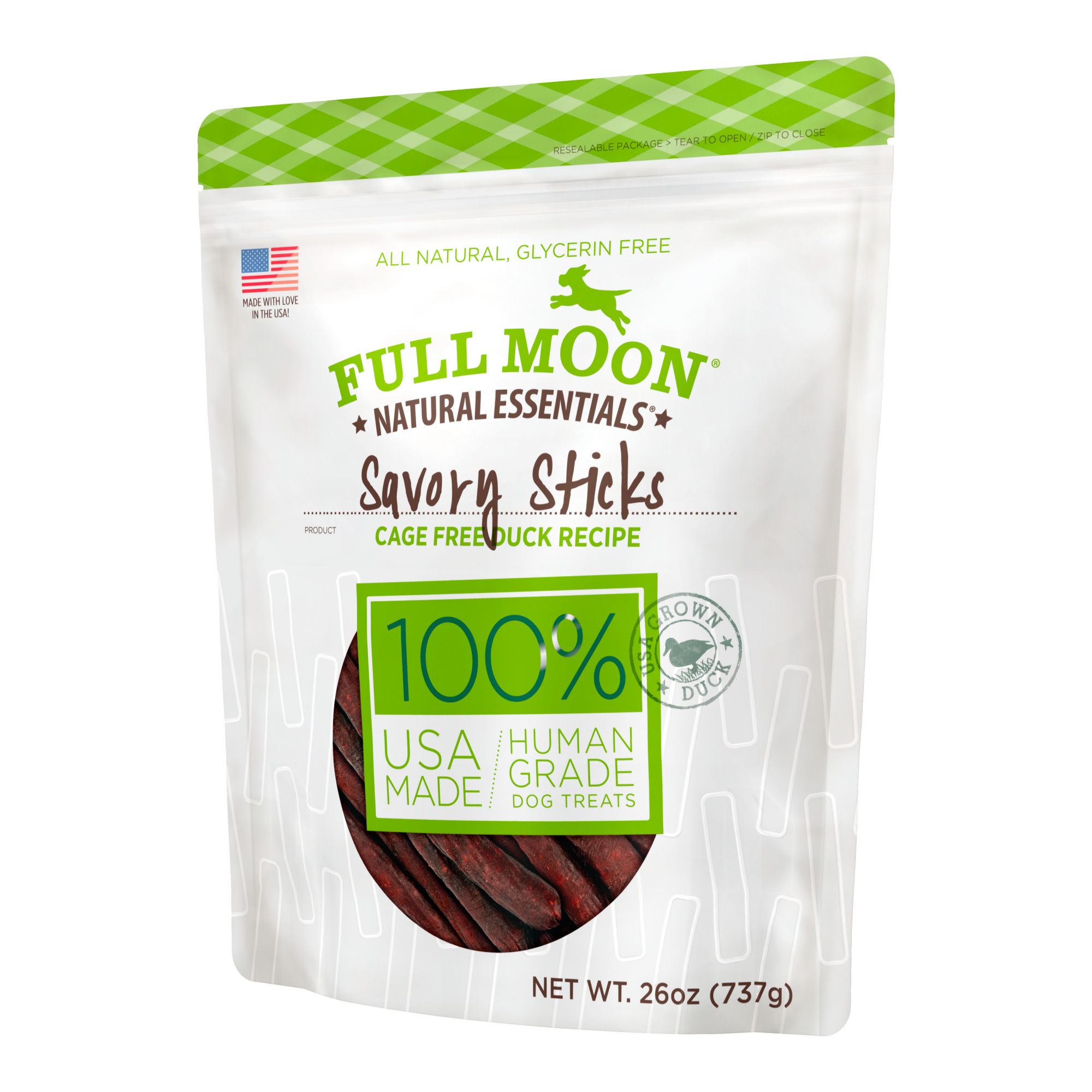 - U.S.-GROWN Duck: Full Moon treats are proudly made in the USA using regionally sourced ingredients, including USDA approved, cage-free.