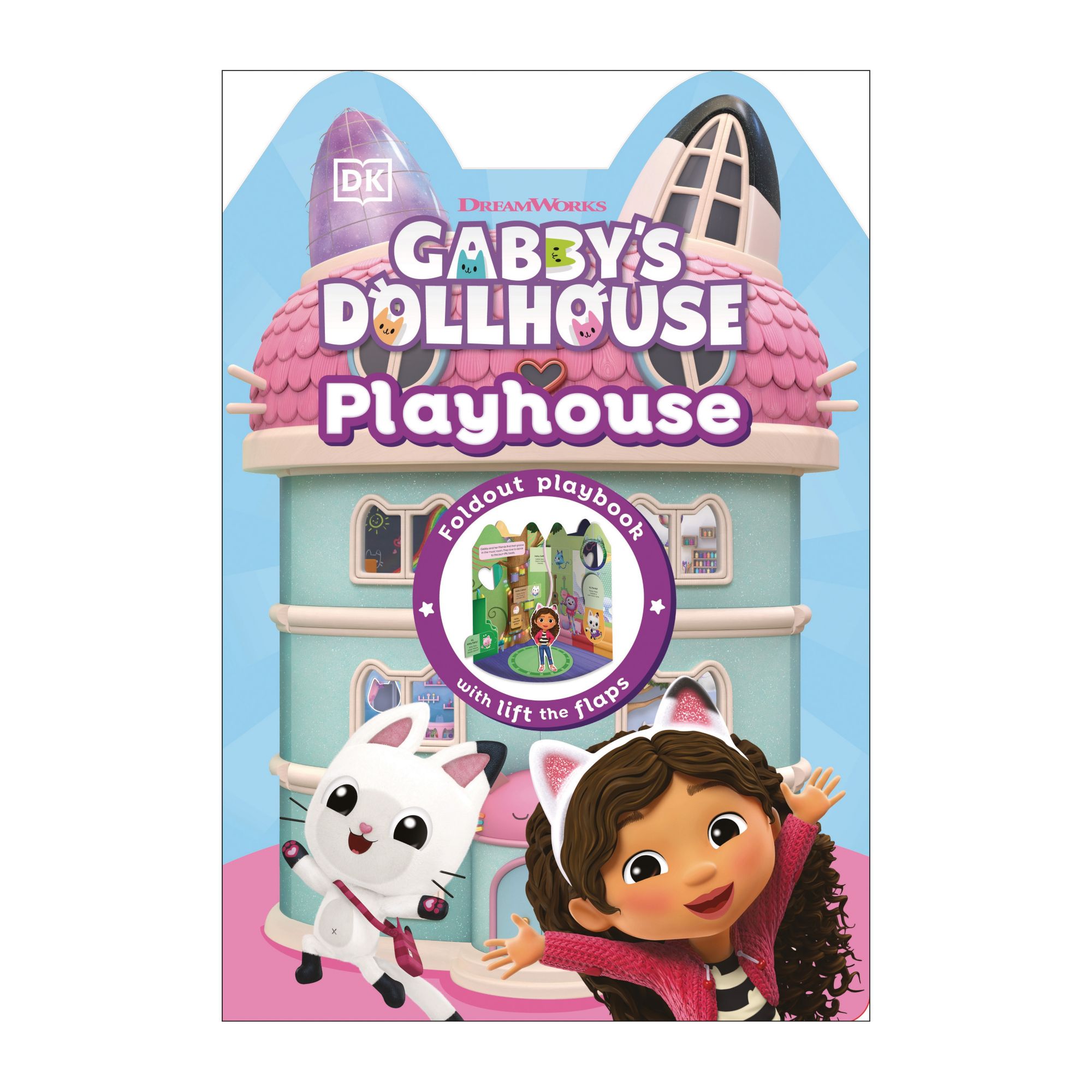 Meet Gabby and the Gabby pets in this Purrfect Playhouse. Open up the carousel, tie it back with the handy ribbon closure, then read the story and join in.