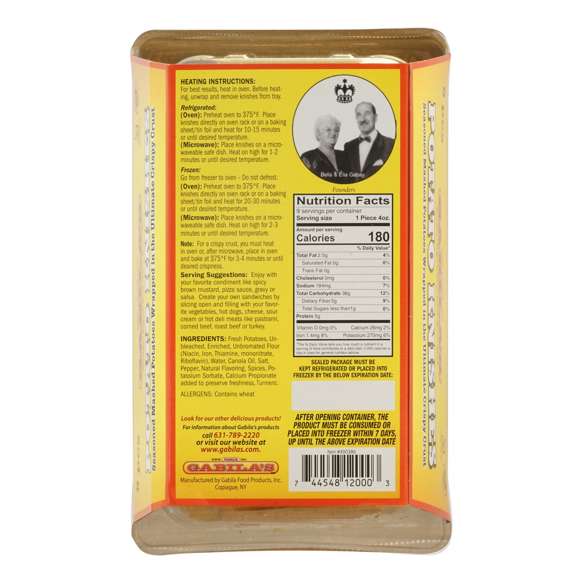 Seasoned mashed potatoes wrapped in a crispy crust Certified vegan, no trans fat and cholesterol free Includes 40.5 oz. of Gabila's Potato Knishes