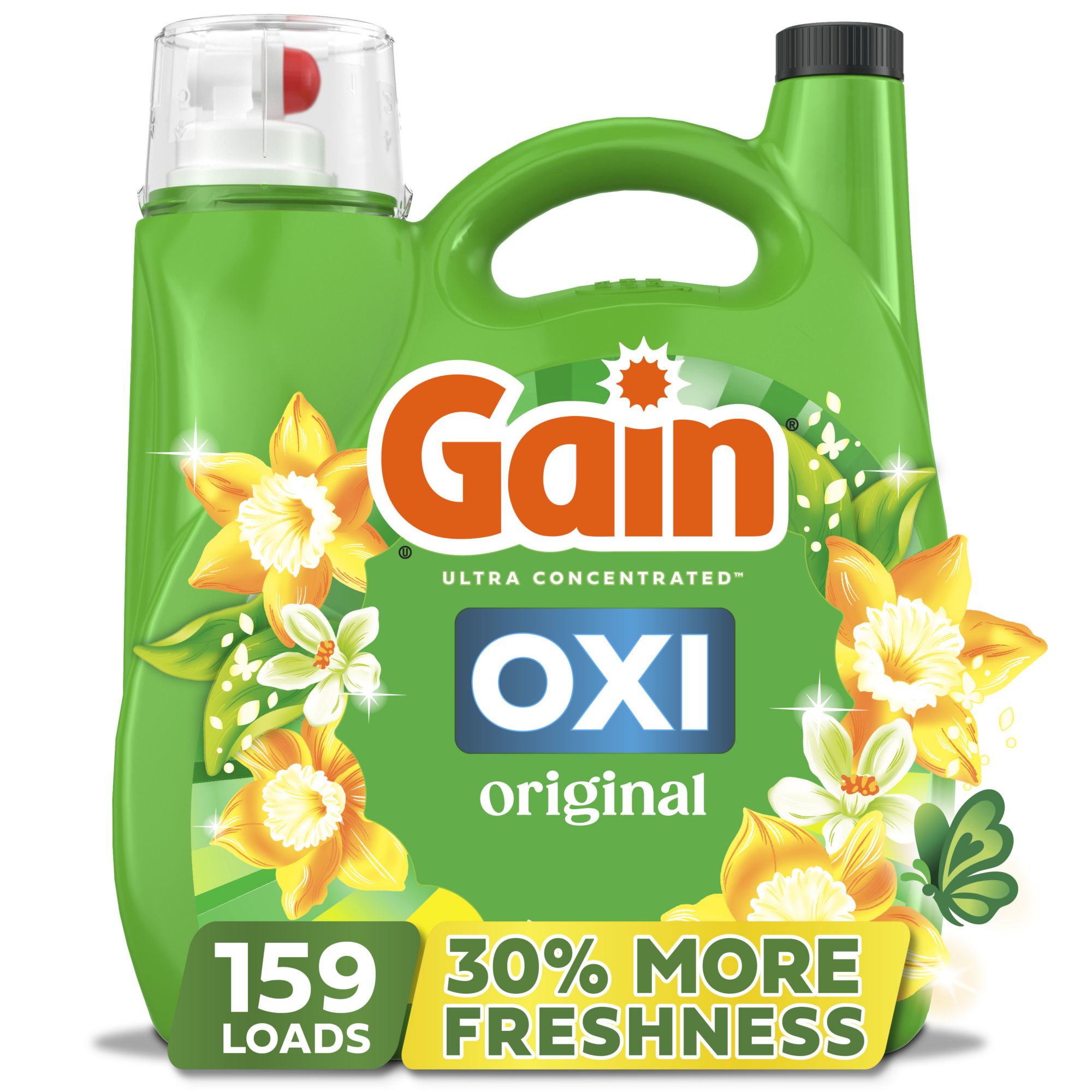 Includes 170 fl. oz. of Gain with Oxi Liquid Laundry Detergent, Original Scent, enough for 159 loads
