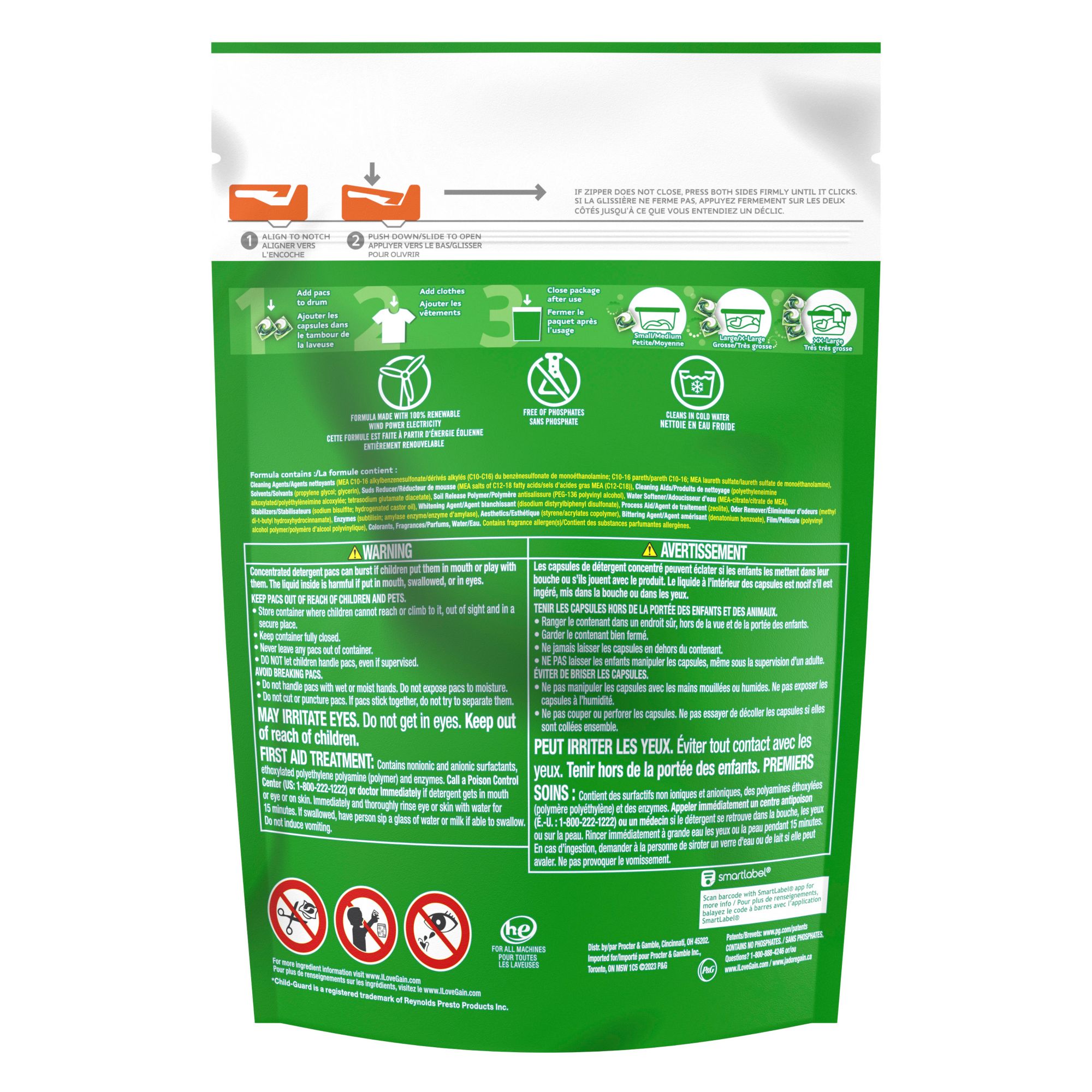 Product Warnings and Restrictions: Harmful if Put in Mouth or Swallowed. Eye Irritant. Pacs Can Burst if Children Put Them in Their Mouths or Play With Them. Keep Out of Reach of Children. Concentrated Detergent Pacs Can Burst if Children Put Them in Their Mouth or Play With Them. The Liquid Inside Is Harmful if Put in the Mouth, Swallowed, or in the Eyes. Keep Pacs Out of Reach of Children and Pets. Store Container Where Children Cannot Reach or Climb to It, Out of Sight, and in a Secure Place. Keep Container Fully Closed. Never Leave Any Pacs Out of the Container. Do Not Let Children Handle Pacs, Even if Supervised. Avoid Breaking Pacs. Do Not Handle Pacs With Wet or Moist Hands. Do Not Expose Pacs to Moisture. Do Not Cut or Puncture Pacs. If Pacs Stick Together, Do Not Try to Separate Them. May Irritate Eyes. Do Not Get in the Eyes. Keep Out of Reach of Children. First Aid Treatment: Contains Nonionic and Anionic Surfactants, Ethoxylated Polyethylene Polyamine (Polymer), and Enzymes. Call a Poison Control Center (US: 1-800-222-1222) or a Doctor Immediately if the Detergent Gets in the Mouth, or Eye, or on the Skin. Immediately and Thoroughly Rinse Eye or Skin With Water for 15 Minutes. If Swallowed, Have the Person Sip a Glass of Water or Milk if Able to Swallow. Do Not Induce Vomiting