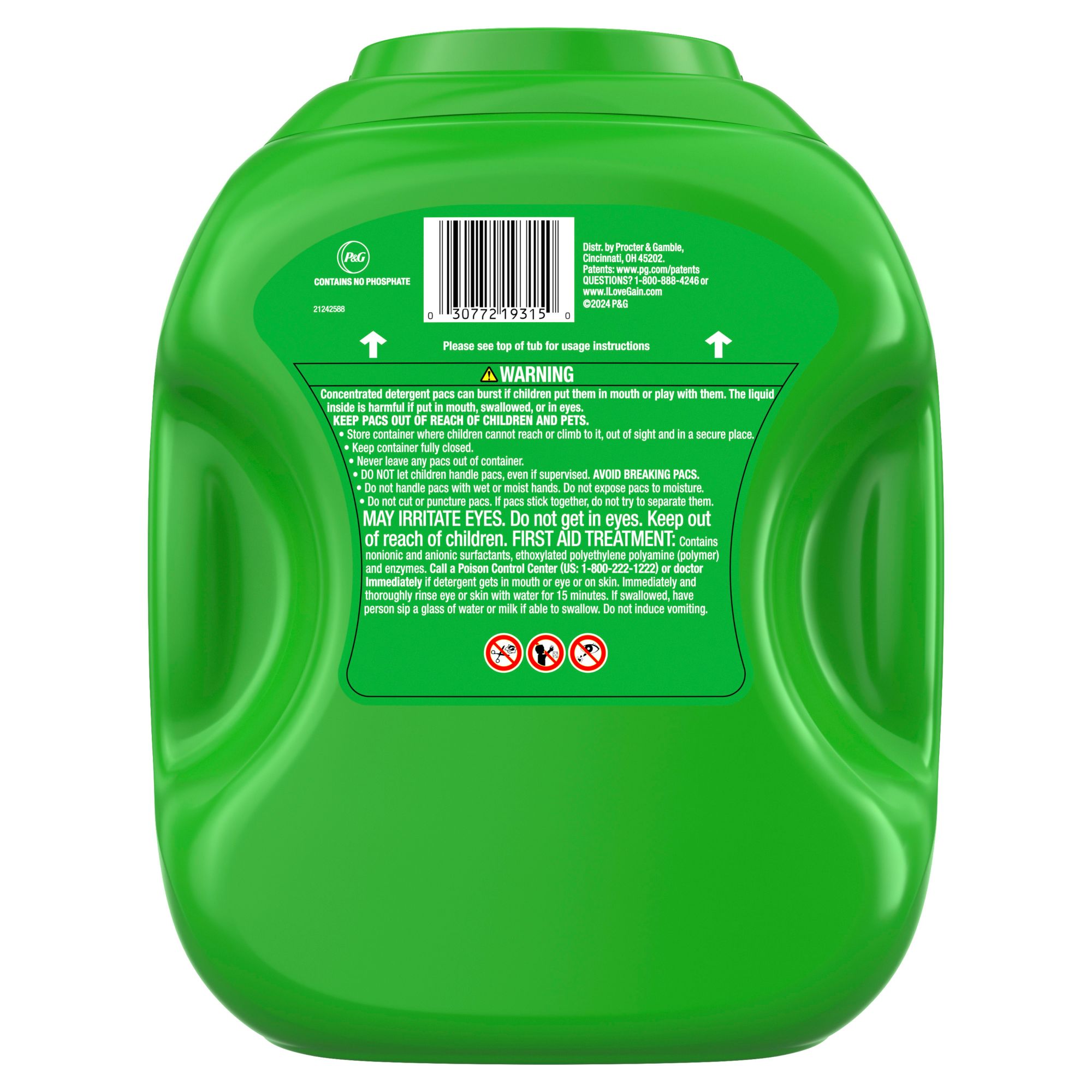 Concentrated detergent pacs can burst if children put them in mouth or play with them. The liquid inside is harmful if put in mouth, swallowed, or in eyes. KEEP PACS OUT OF REACH OF CHILDREN AND PETS. Store container where children cannot reach or climb to it, out of sight and in a secure place. Keep container fully closed. Never leave any pacs out of container. DO NOT let children handle pacs, even if supervised. AVOID BREAKING PACS. Do not handle pacs with wet or moist hands. Do not expose pacs to moisture. Do not cut or puncture pacs. If pacs stick together, do not try to separate them. MAY IRRITATE EYES. Do not get in eyes. Keep out of reach of children. FIRST AID TREATMENT: Contains nonionic and anionic surfactants, ethoxylated polyethylene polyamine (polymer) and enzymes. Call a Poison Control Center (US: 1-800-222-1222) or doctor Immediately if detergent gets in mouth or eye or on skin. Immediately and thoroughly rinse eye or skin with water for 15 minutes. If swallowed, have person sip a glass of water or milk if able to swallow. Do not induce vomiting