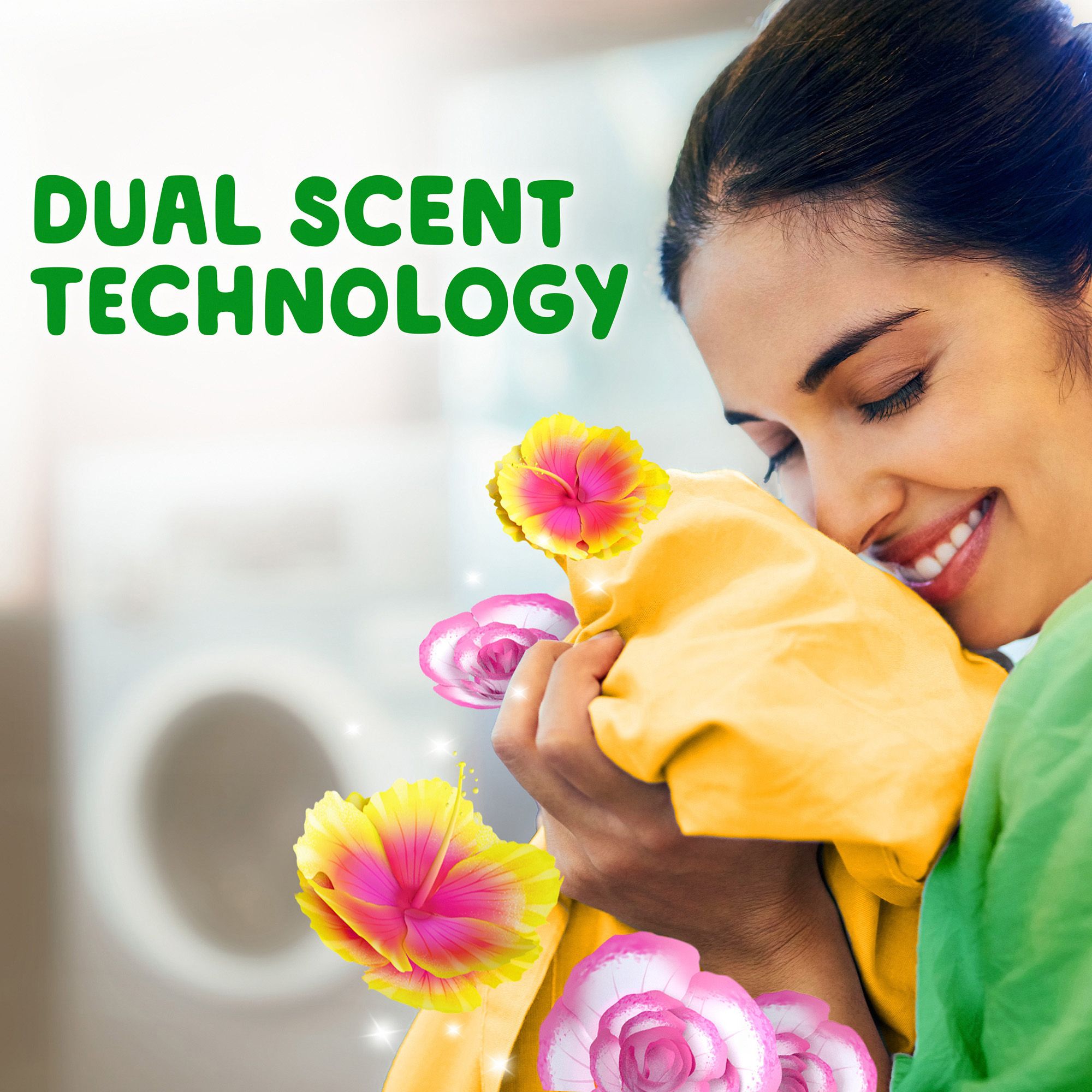 Get two scents in one irresistible smell with Gain Tango Twist! Experience Gain Tango Twist your favorite way, and if you're into warm and tropical scents, try Rose + Hibiscus Gain Flings, made with a tropical blend of exotic blossoms and fruits that will take you to a relaxing oasis. Gain Tango Twist Laundry Detergent Pacs deliver 4 benefits in 1: Oxi, Febreze, Dual Scent Technology, and Rose + Hibiscus scent. Flings also work in all machines and water conditions. Plus, they're incredibly easy to use, you can tango in just two steps: 1. Toss two Gain Flings (for large loads) into the washer 2. Add your laundry... and you're all set for an experience full of delight! Combine Gain Tango Twist Laundry Detergent Flings with Gain Tango Twists In-Wash Scent Booster Beads in Cherry + Rose scent and Gain Tango Twists Fabric Softener in Hibiscus + Vanilla scent to take your laundry experience to the next level. Discover the full Gain Tango Twist line up to mix, match, and create your own unique scent combinations. Are you ready to tango? Try Gain Tango Twist Laundry Flings in Rose + Hibiscus scent and let freshness and scent take the lead in your day!