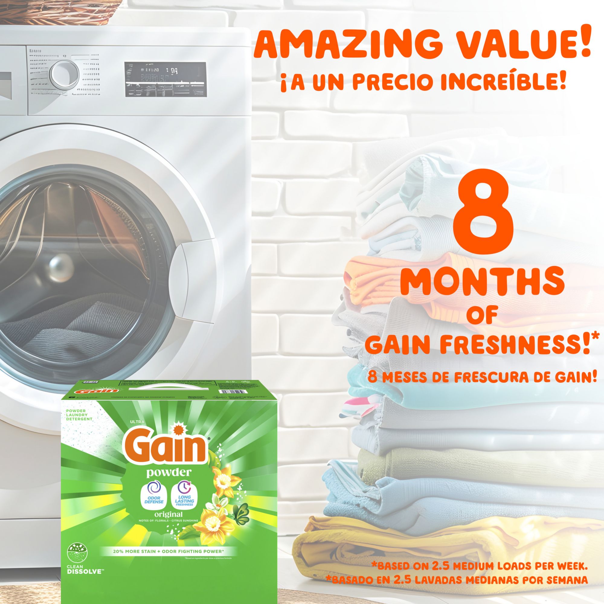 EASY TO USE: Just add Gain Powder Laundry Detergent to the drum, add clothes, and start wash. Enjoy!
