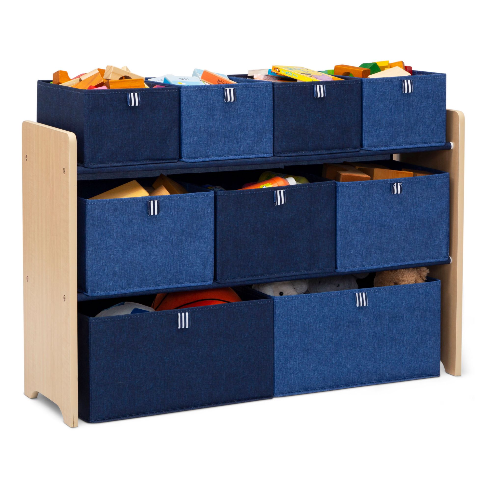 Attention to detail: This sturdy toy organizer with nine fabric bins in varying sizes offers much more storage than a traditional toy box