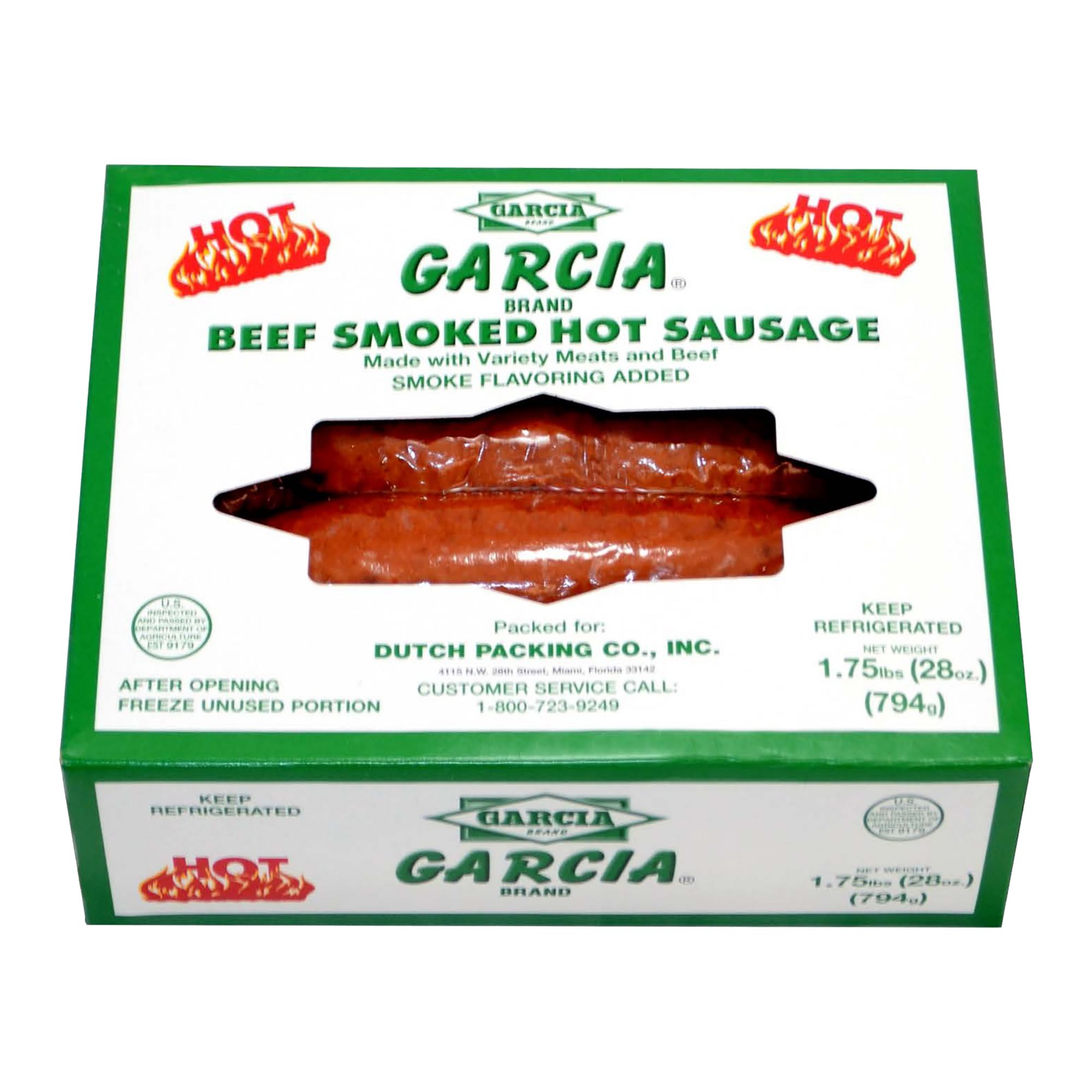 Garcia Beef Smoked Hot Sausage, 1.75 lbs.