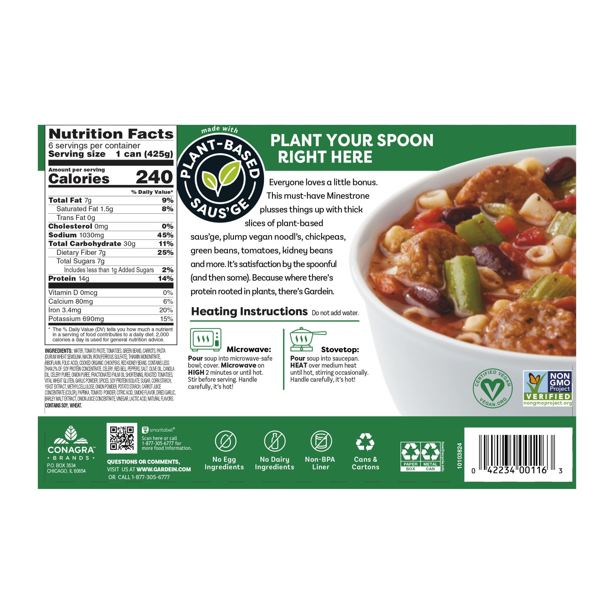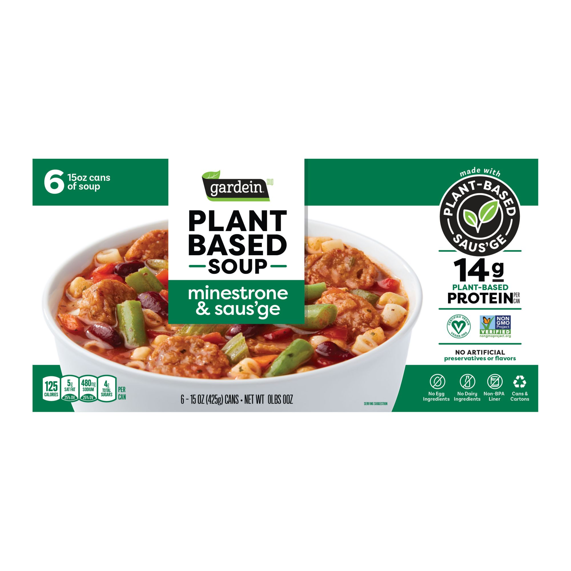 Gardein Plant Based Soup Minestrone & Saus'ge 15 oz. Can, 6 pk.