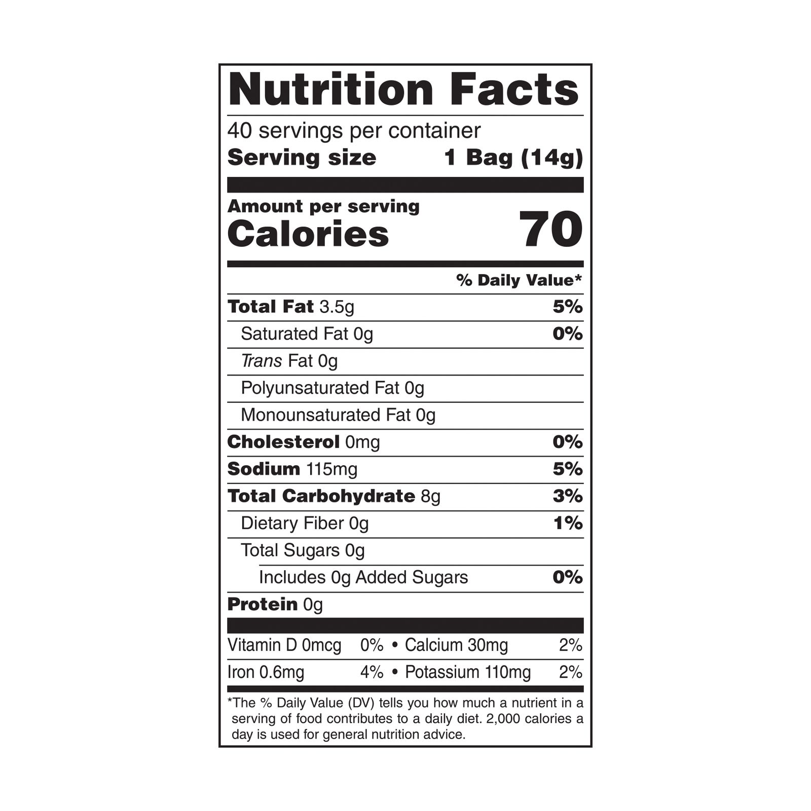 Ingredients Potato Flour, Canola Oil And/or Sunflower Oil And/or Safflower Oil, Potato Starch, Corn Starch, Cane Sugar, Salt, Sea Salt, Dehydrated Spinach, Dehydrated Tomato, Potassium Chloride, Beetroot Powder (Color), Turmeric (Color).