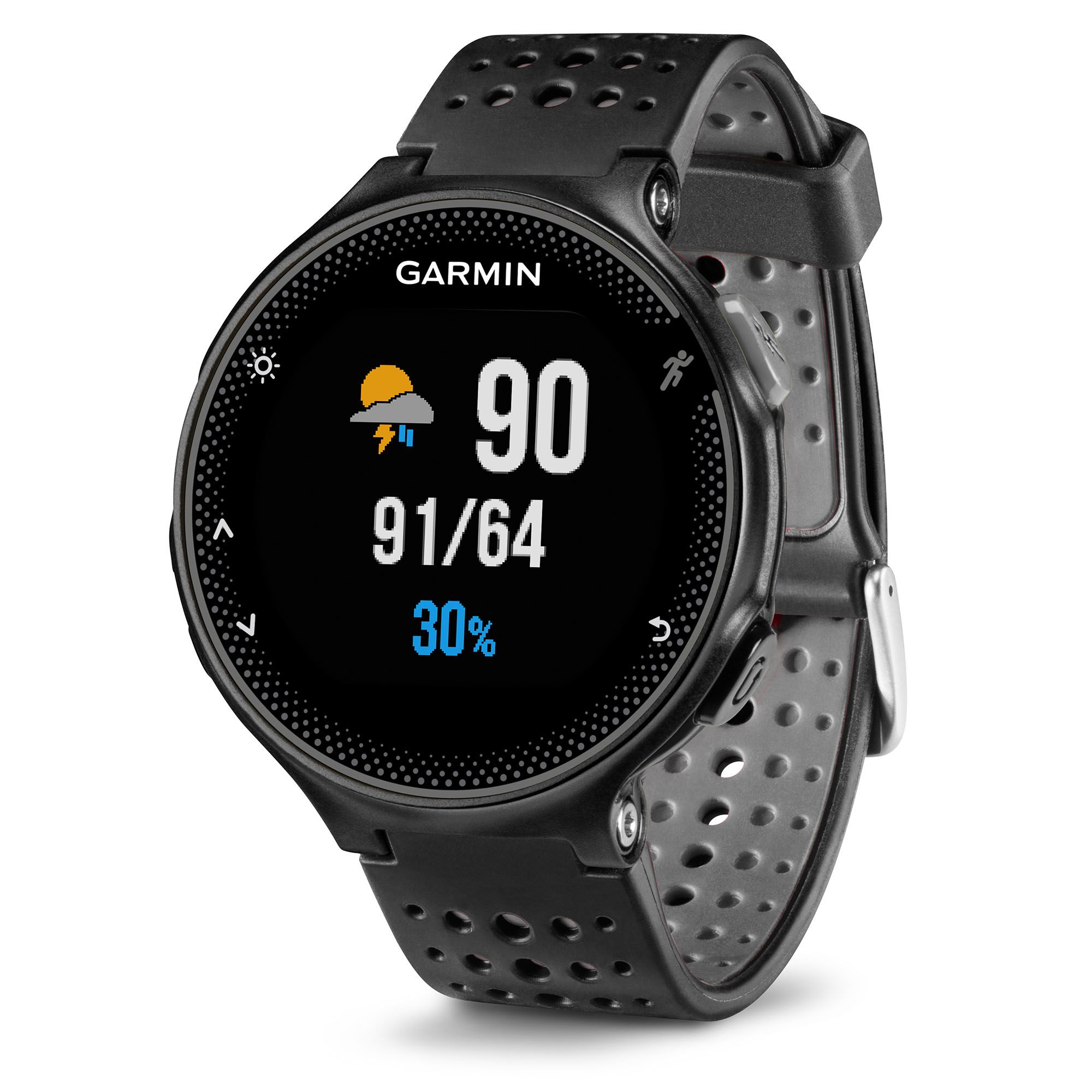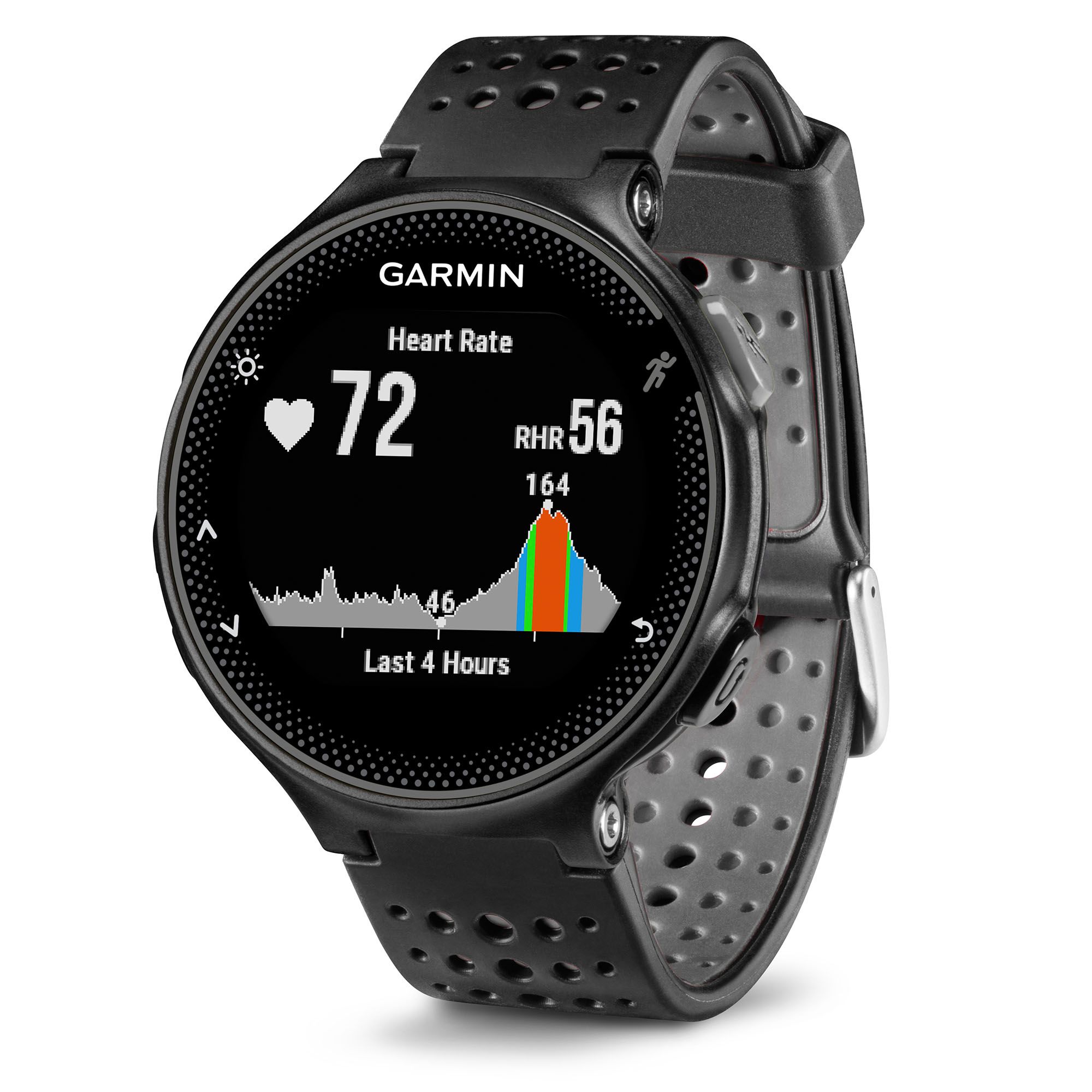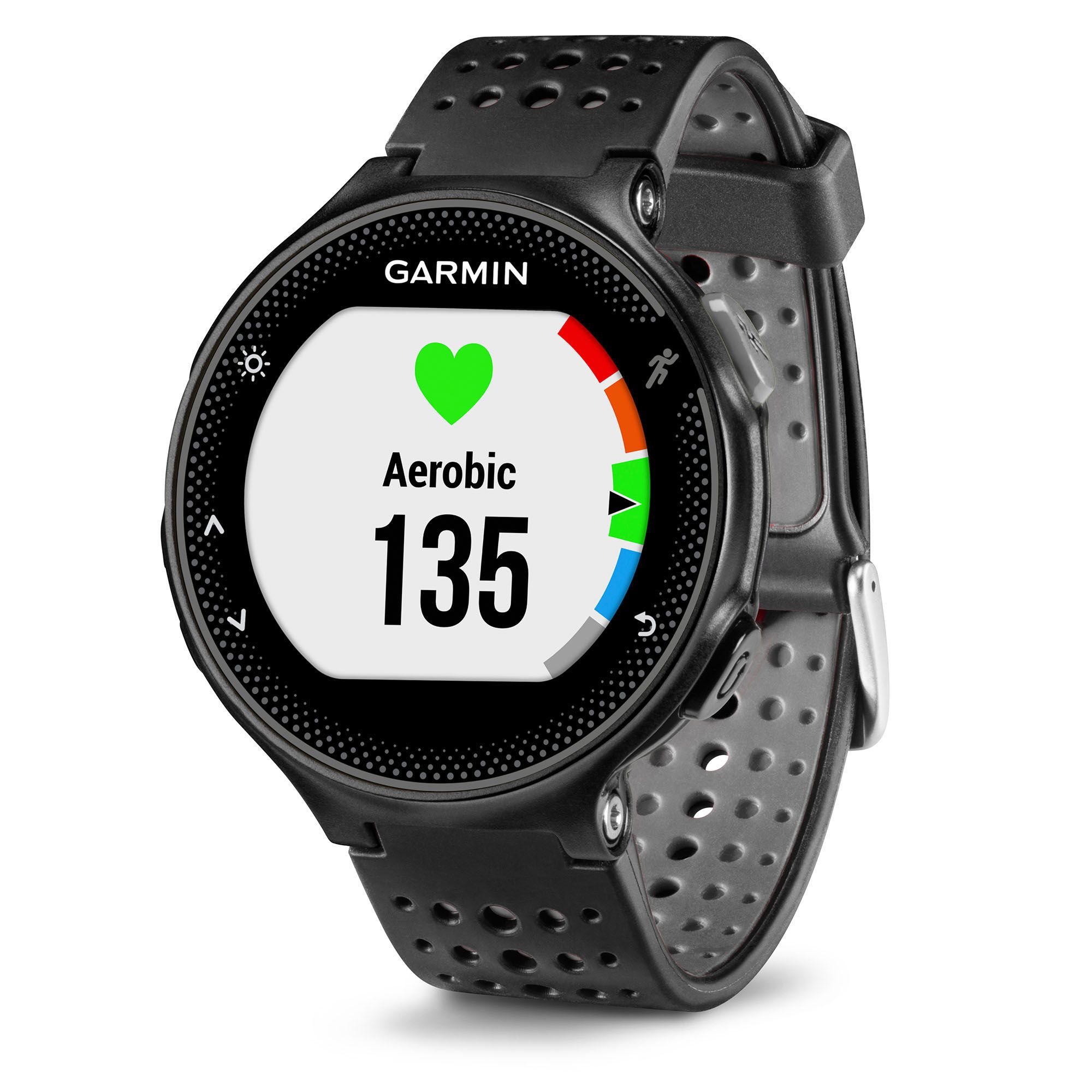 Tracks distance, pace, time, heart rate and more Connected features: automatic uploads to Garmin Connect, live tracking, audio prompts, smart notifications and social media sharing Activity tracking counts daily steps, distance, calories and sleep Download data fields, watch faces, widgets and applications from Connect IQ Includes Forerunner 235 watch, charging/data cable, and manual