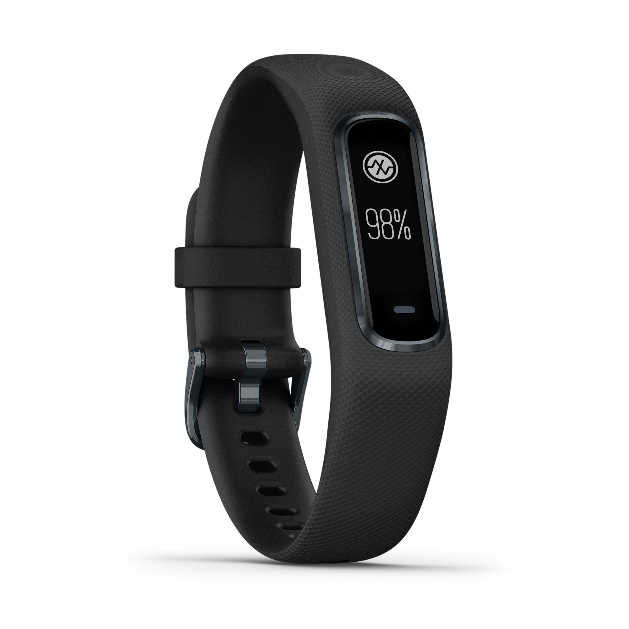 Accent your style while enhancing your fitness with the Garmin Vívosmart 4 fitness tracker. This slim, swim-friendly wearable technology comes loaded with fitness and wellness features to help you make the most of a healthier, more active lifestyle. A wrist-based Pulse Ox sensor lets you estimate blood oxygen saturation while you’re sleeping or spot-check your oxygen levels anytime during the day. The device also monitors heart rate at the wrist and includes helpful tools such as all-day stress tracking, a relaxation breathing timer and VO2 max readings.