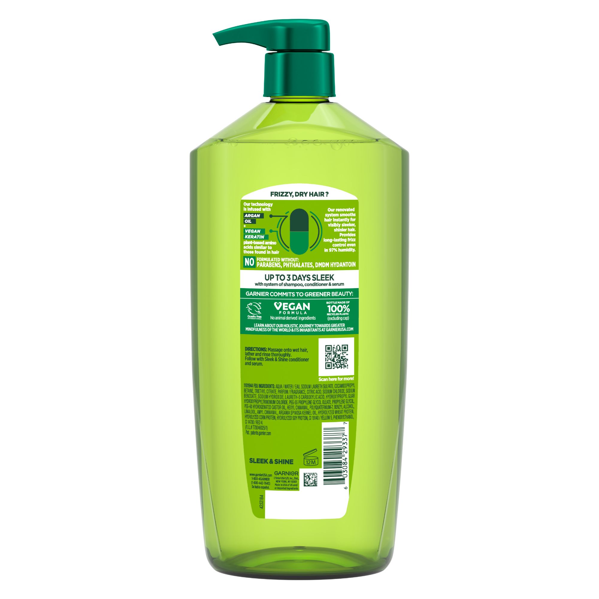 Hair is almost entirely made up of protein, which gives hair its strength. The paraben-free Fructis formulas with Active Fruit Protein, an exclusive combination of citrus protein, Vitamins B3 & B6, fruit & plant-derived extracts and strengthening conditioners, are designed for healthier, stronger hair. Fructis Sleek & Shine Shampoo with fairly & sustainably sourced Argan Oil from Morocco soaks into frizzy, dry hair to smooth each strand. Long lasting frizz control even in 97% humidity*. *With shampoo, conditioner & leave-in cream.