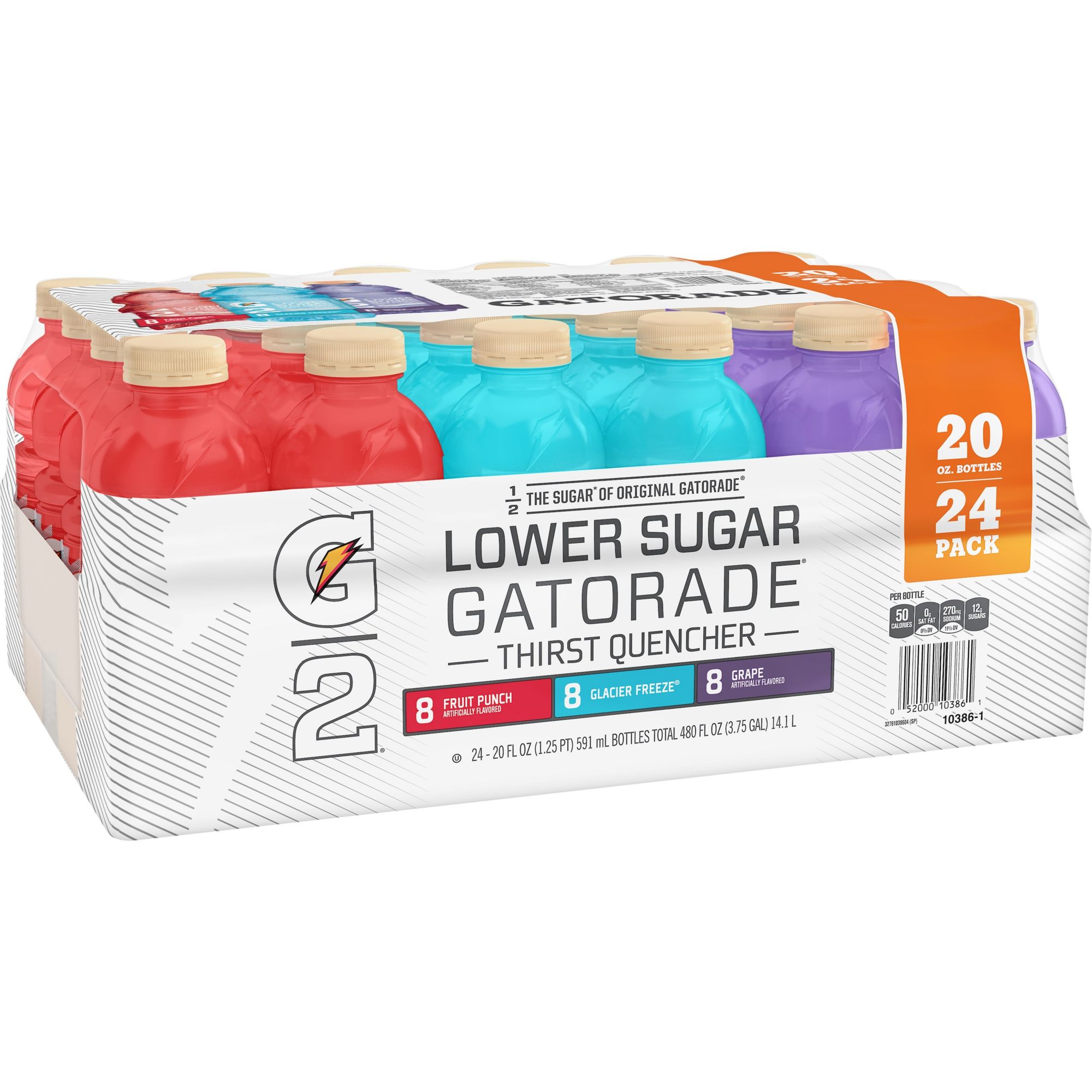 Includes eight 20-oz. Grape, eight 20-oz. Glacier Freeze and eight 20-oz. Fruit Punch bottles