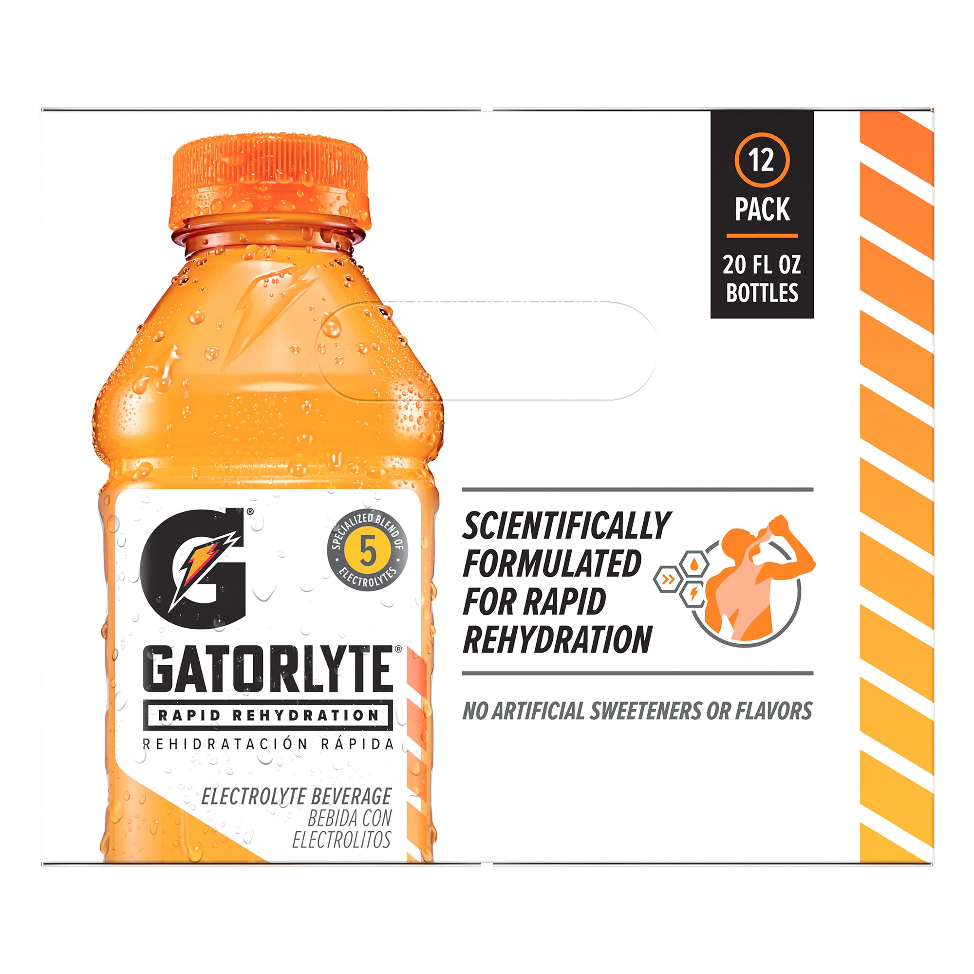 Gatorlyte Rapid Rehydration Electrolyte Beverages are scientifically formulated for rapid hydration. This beverage is made with a specialized blend of five electrolytes, including sodium, potassium, chloride, magnesium, and calcium. These electrolyte drinks have no artificial sweeteners or flavors. Made with 60% lower sugar than leading sports drink, Gatorlyte contains just 12g total sugars per 20 fl. oz. serving.
