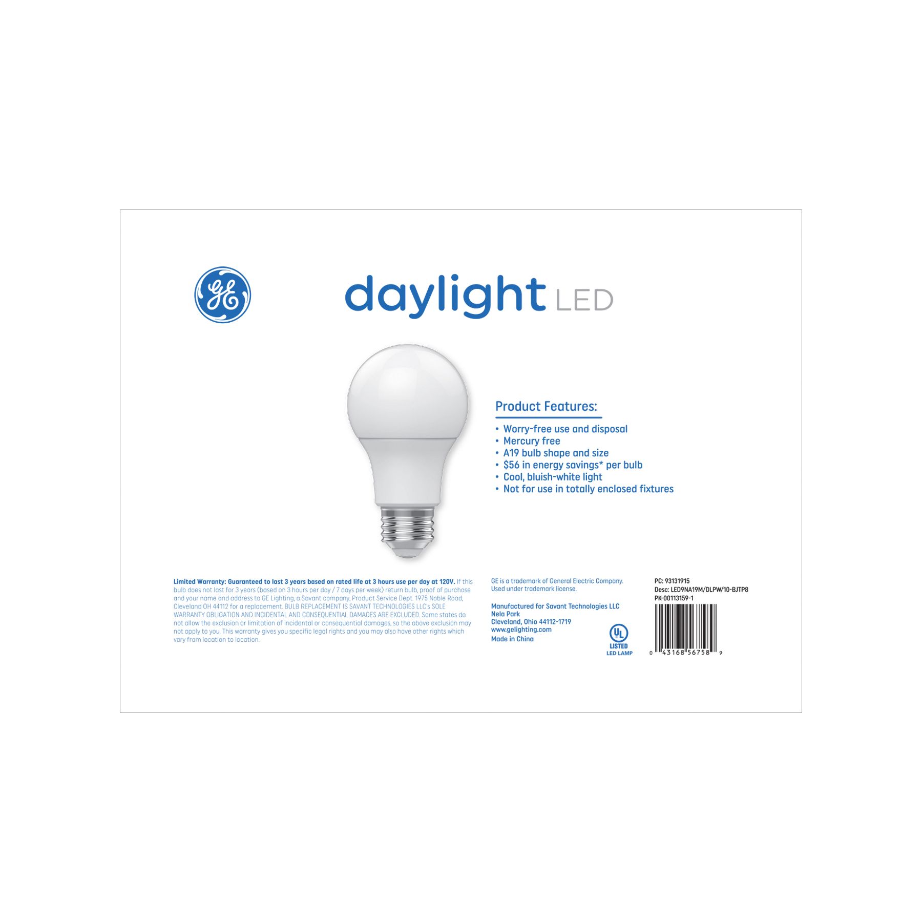 GE 60W LED A19 Light Bulbs, 8 pk. - Daylight