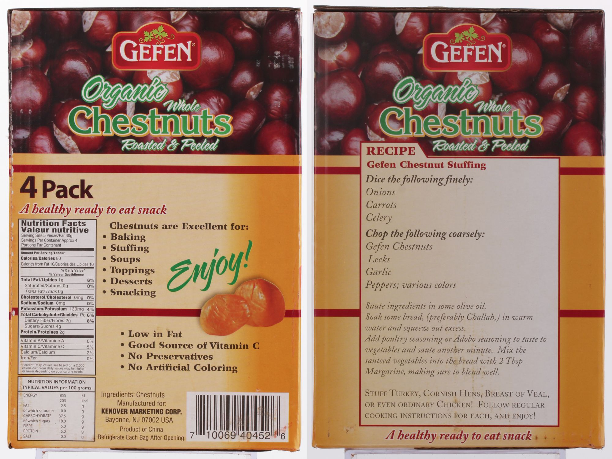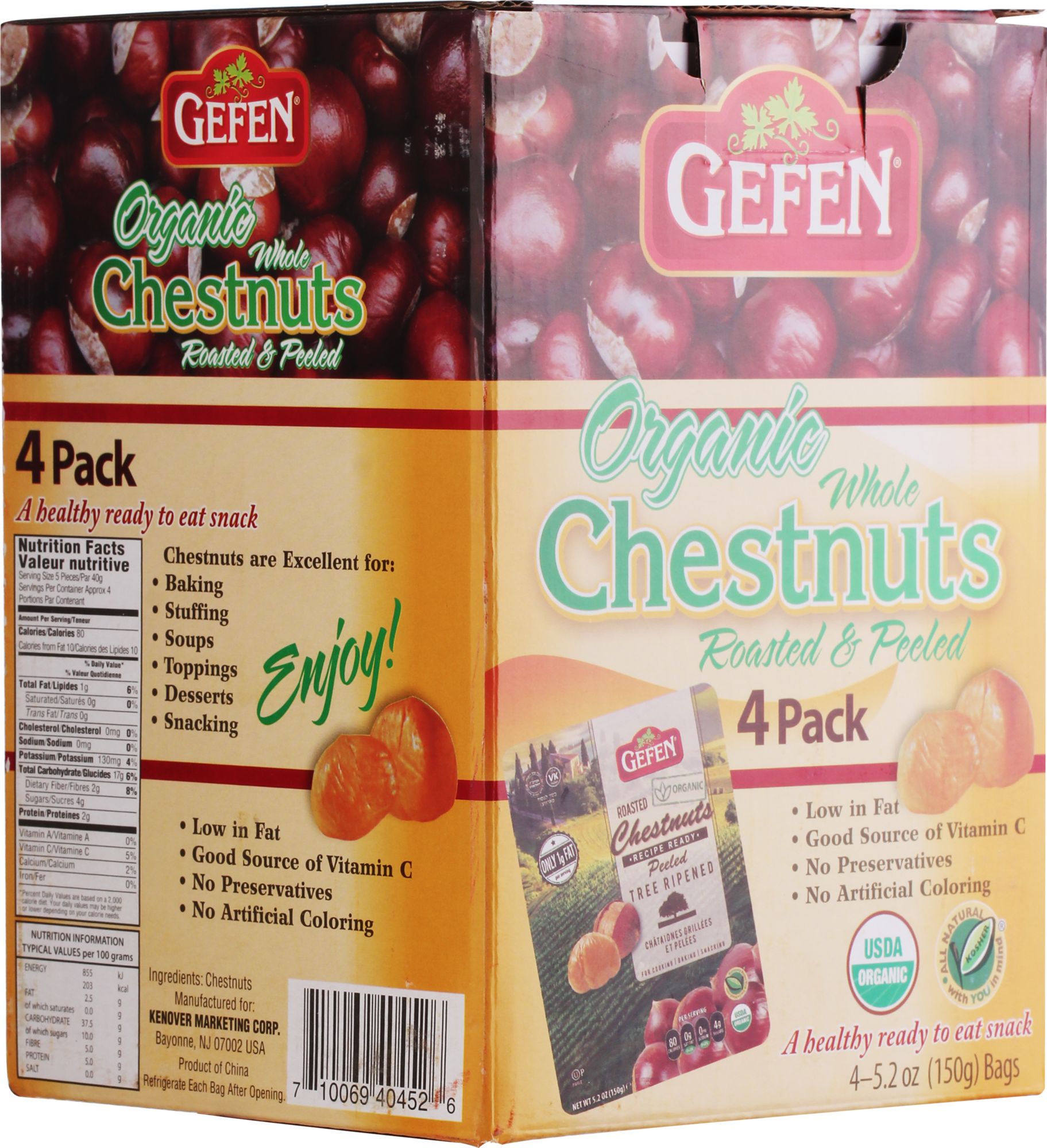 Gefen Organic Whole Chestnuts are low in fat, a good source of vitamin C and contain no preservatives or artificial ingredients.