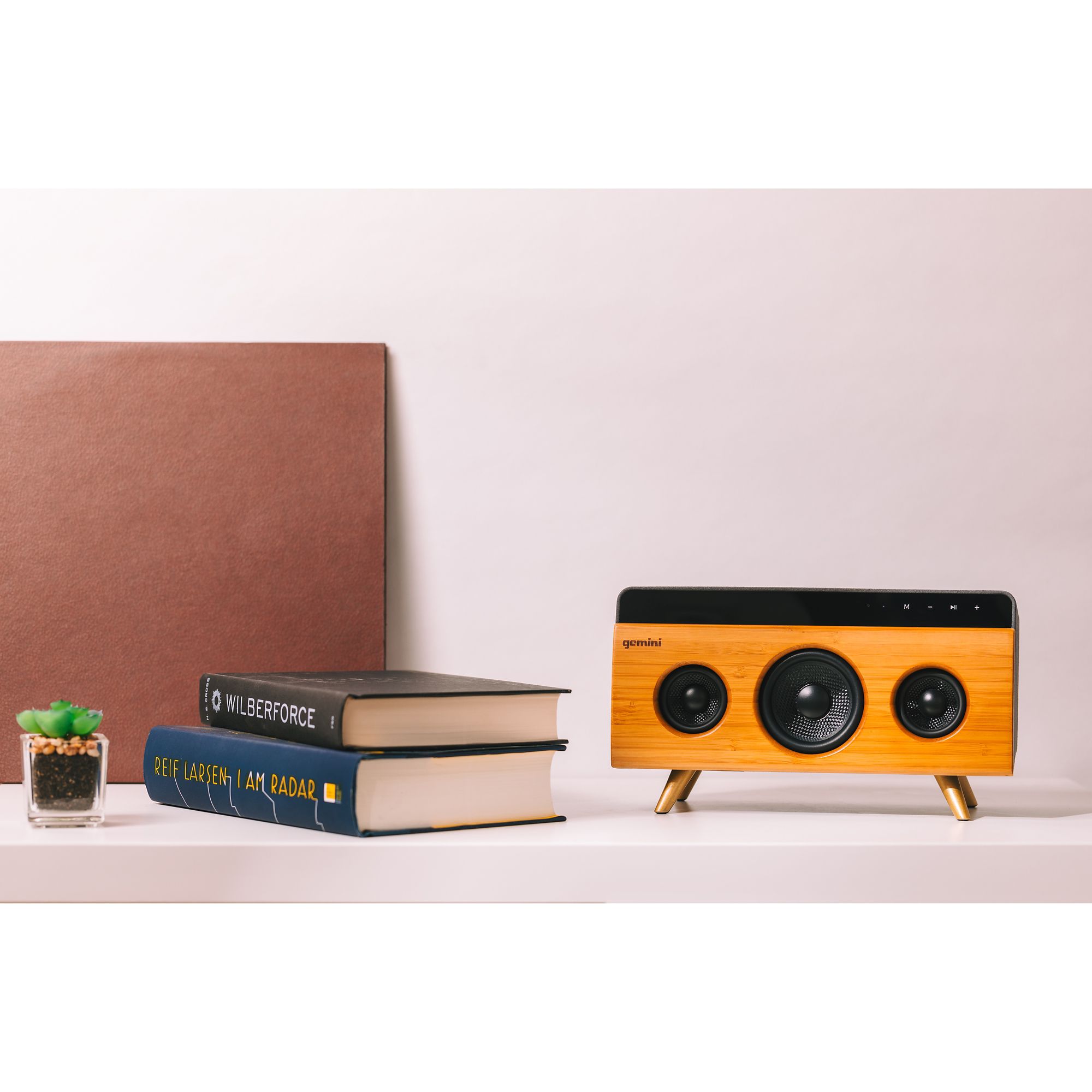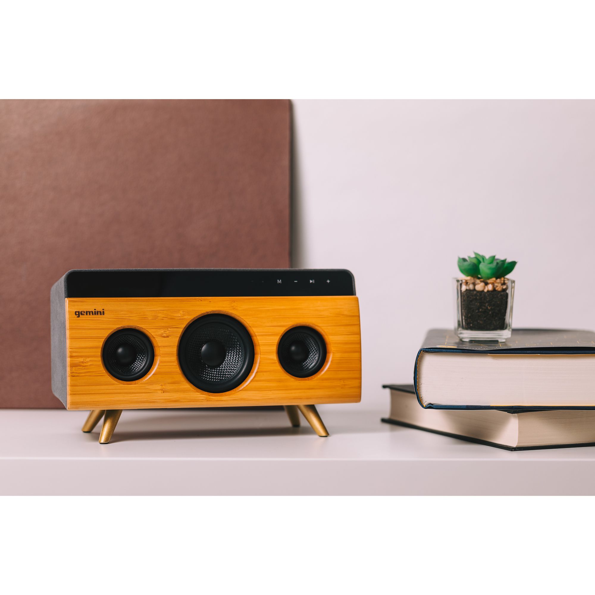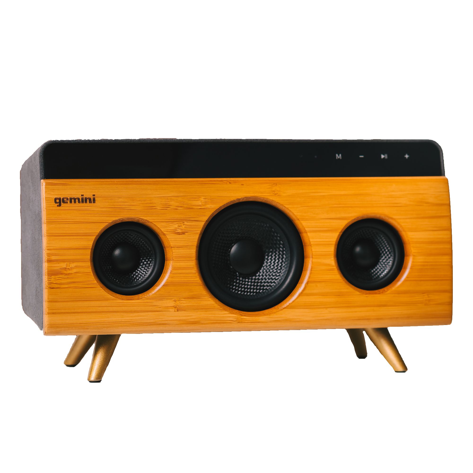 The Gemini BRS-330 Bamboo Rechargeable Bluetooth Speaker is handmade from a single craftsman. This Bluetooth speaker packs stylish looks and the perfect design to match even the most sophisticated lifestyle. The BRS- 330 is equipped with Gemini's innovative sound reproduction technology that fills every room. Each speaker contains a USB playback, Aux input, and a built-in microphone to capture the sounds of your life. The speaker is made from high-class natural bamboo, while the top and side are covered in a luxurious suede.