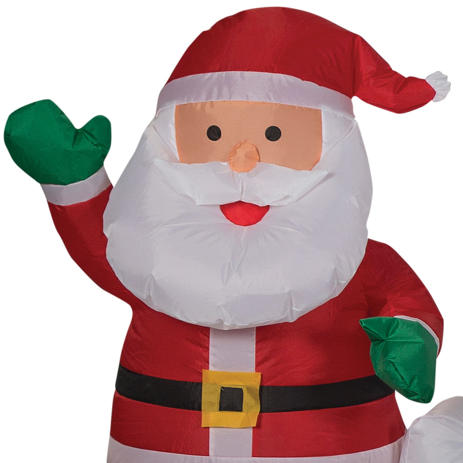 Celebrate the season with an airblown inflatable Merry Christmas sign! Featuring Santa and two stacked gift boxes, this whimsical Christmas inflatable makes an eye-catching addition to your outdoor decorations. The setup is super simple. Just plug it in, stake it down, and watch the magic unfold. Includes everything needed for easy outdoor setup.