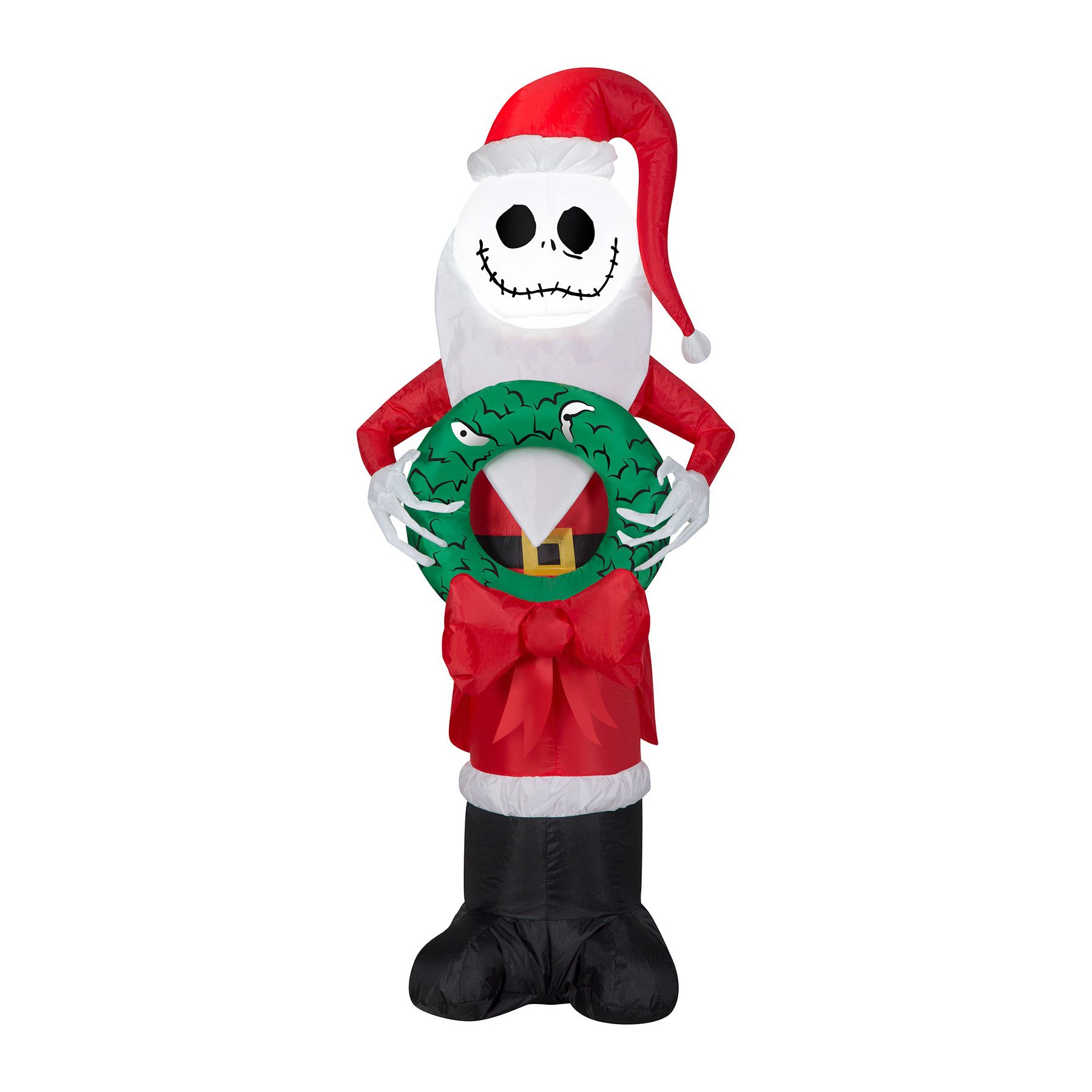 Gemmy 4' Christmas Inflatable Jack Skellington in Santa Suit with Wreath