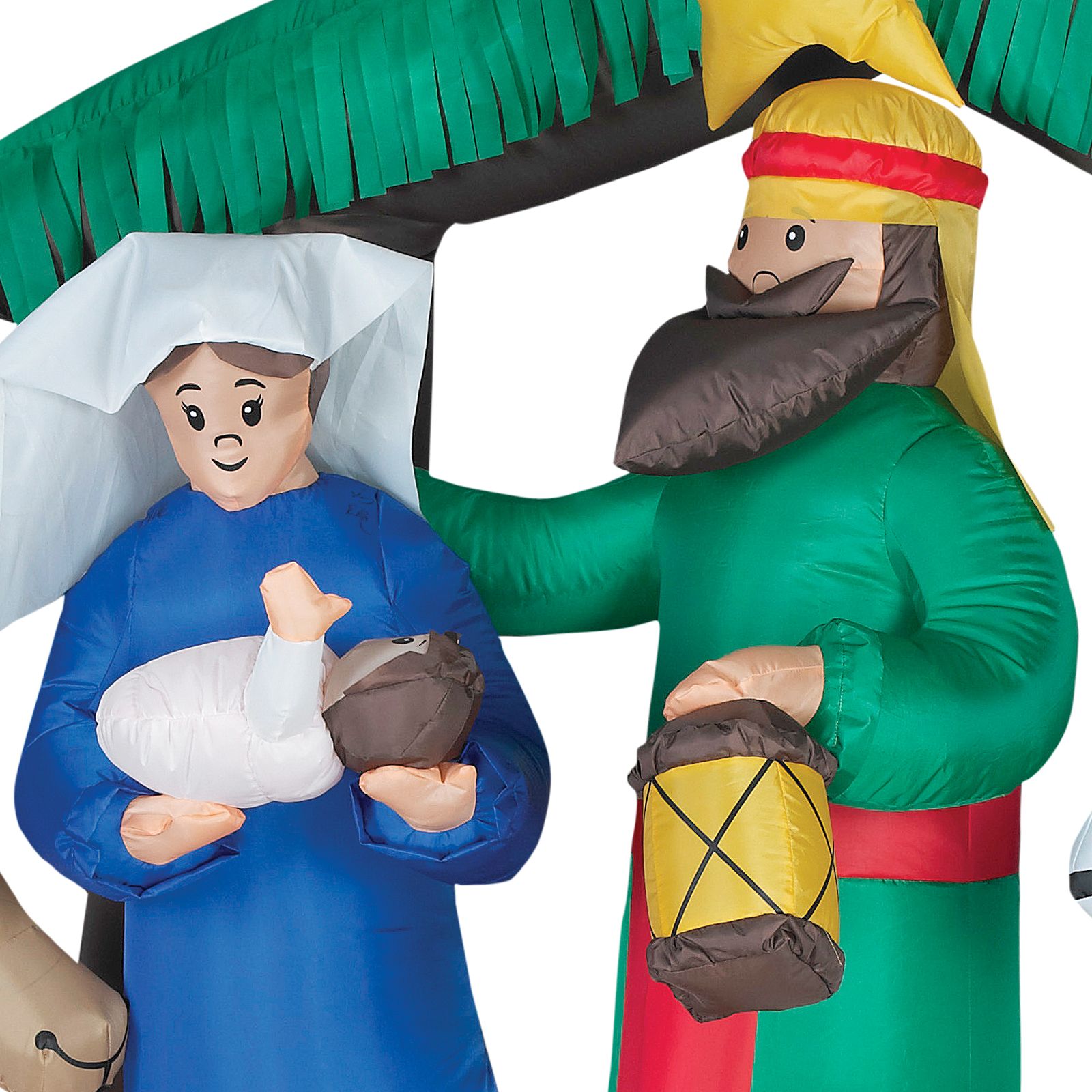 Celebrate the season with an airblown inflatable nativity scene. Featuring a classic scene with the holy family and the star of Bethlehem joined by a trio of animals, this inflatable makes a meaningful addition to your indoor or outdoor Christmas decorations. Set up is in a snap for the easiest decorating ever. Just plug it in, stake it down and watch the magic unfold. Includes everything needed for easy outdoor setup.