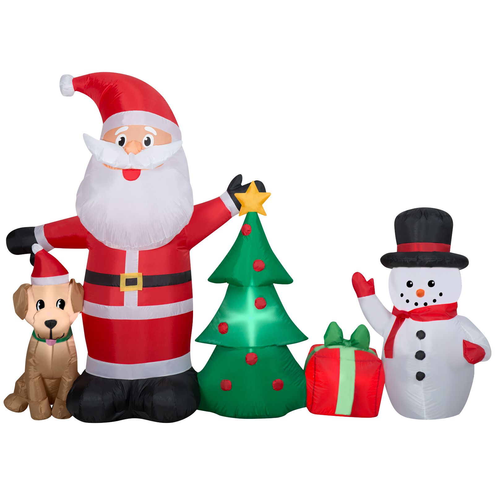 Gemmy 5' Airblown Inflatable Santa with Puppy, Christmas Tree, Gift Box and Snowman