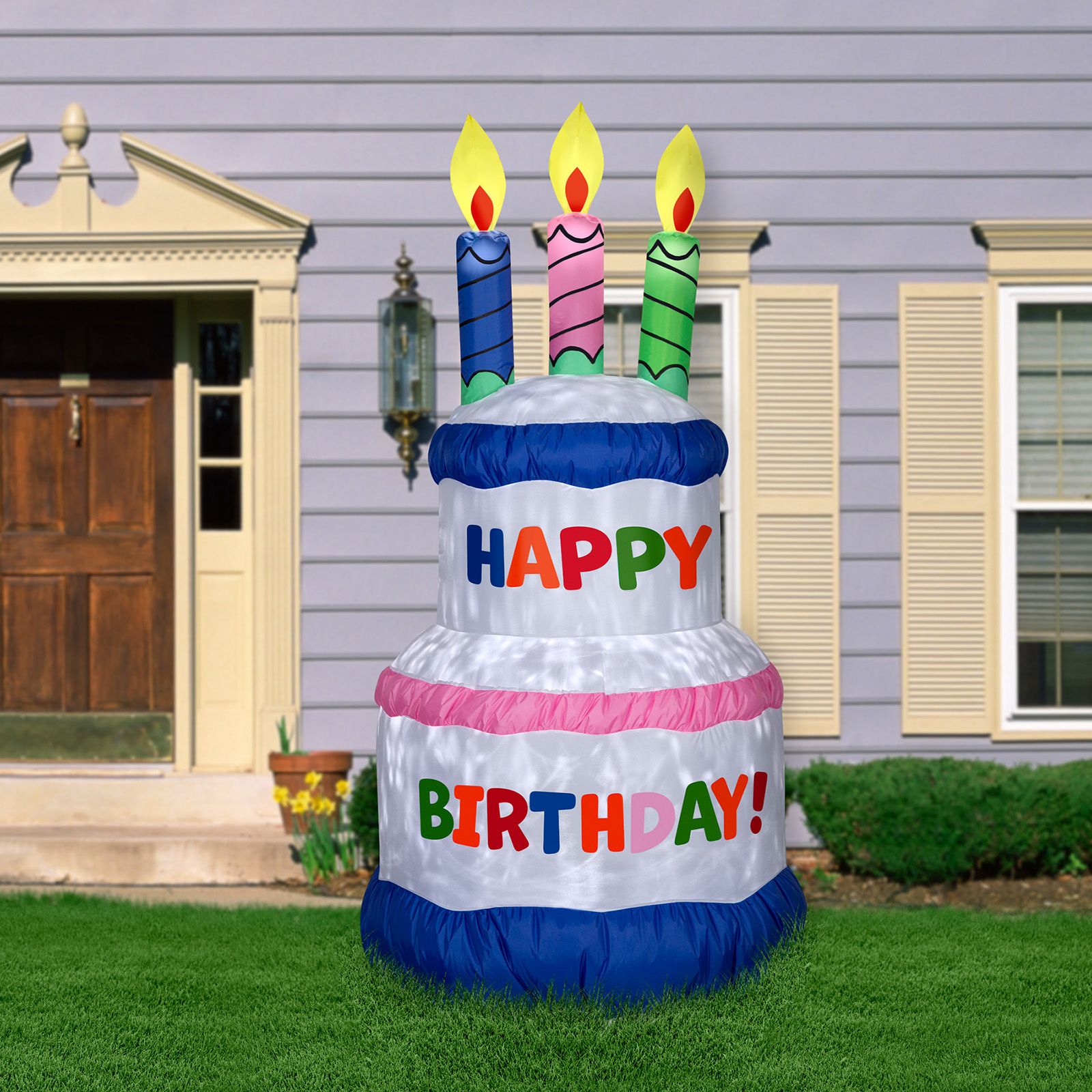 Gemmy 7' Birthday Cake Airblown Inflatable with Candles and Kaleidoscope Lights