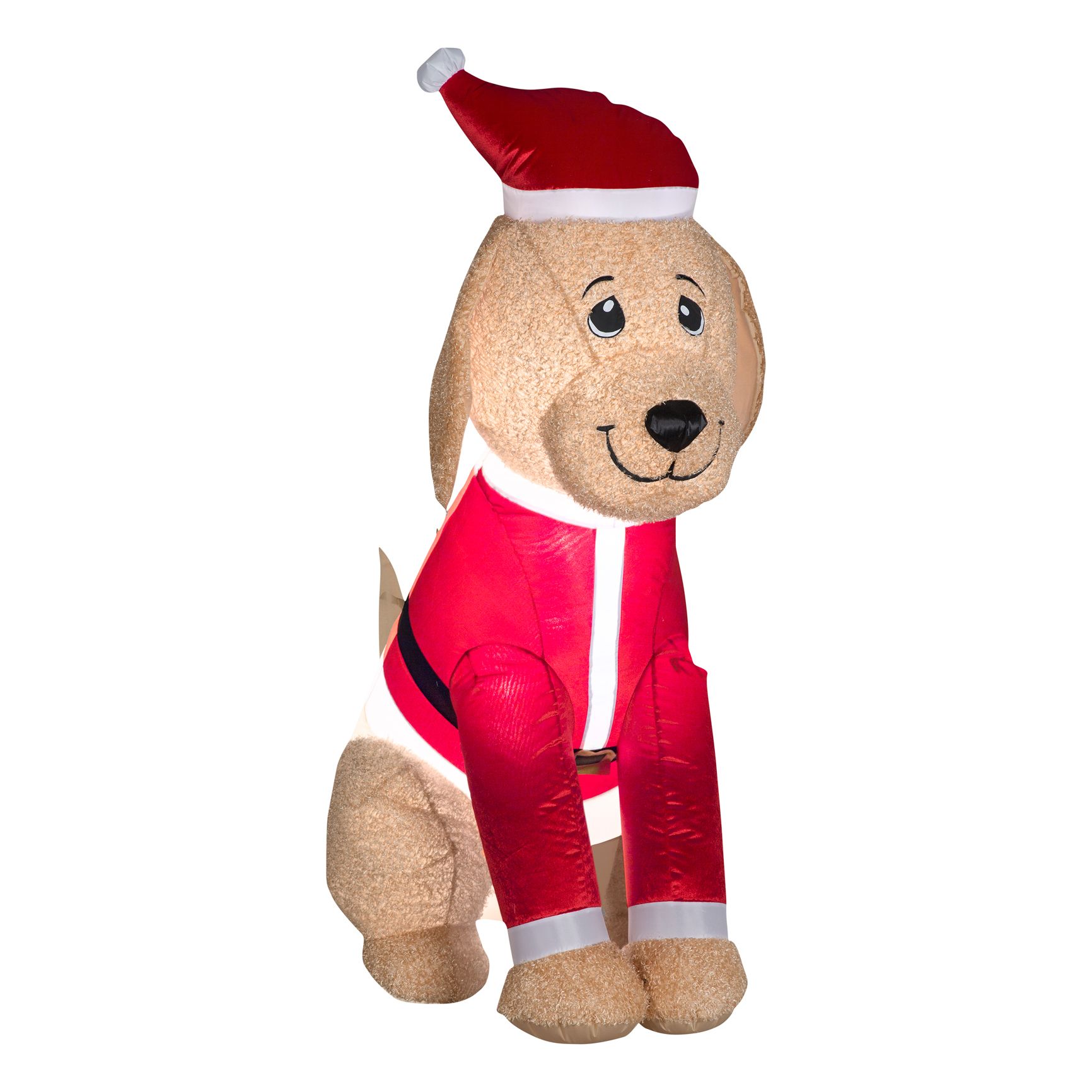 Decorate for the holidays with an extravagant Airblown Inflatable Luxe Golden Retriever dressed as Santa. Featuring luxurious plush fabric, this Luxe Golden Retriever makes an impressive addition to your Christmas decorations. The Airblown Inflatable Luxe Golden Retriever is weather-resistant and safe for both indoor and outdoor use. The setup is super simple - just plug it in, stake it down and watch the magic unfold.