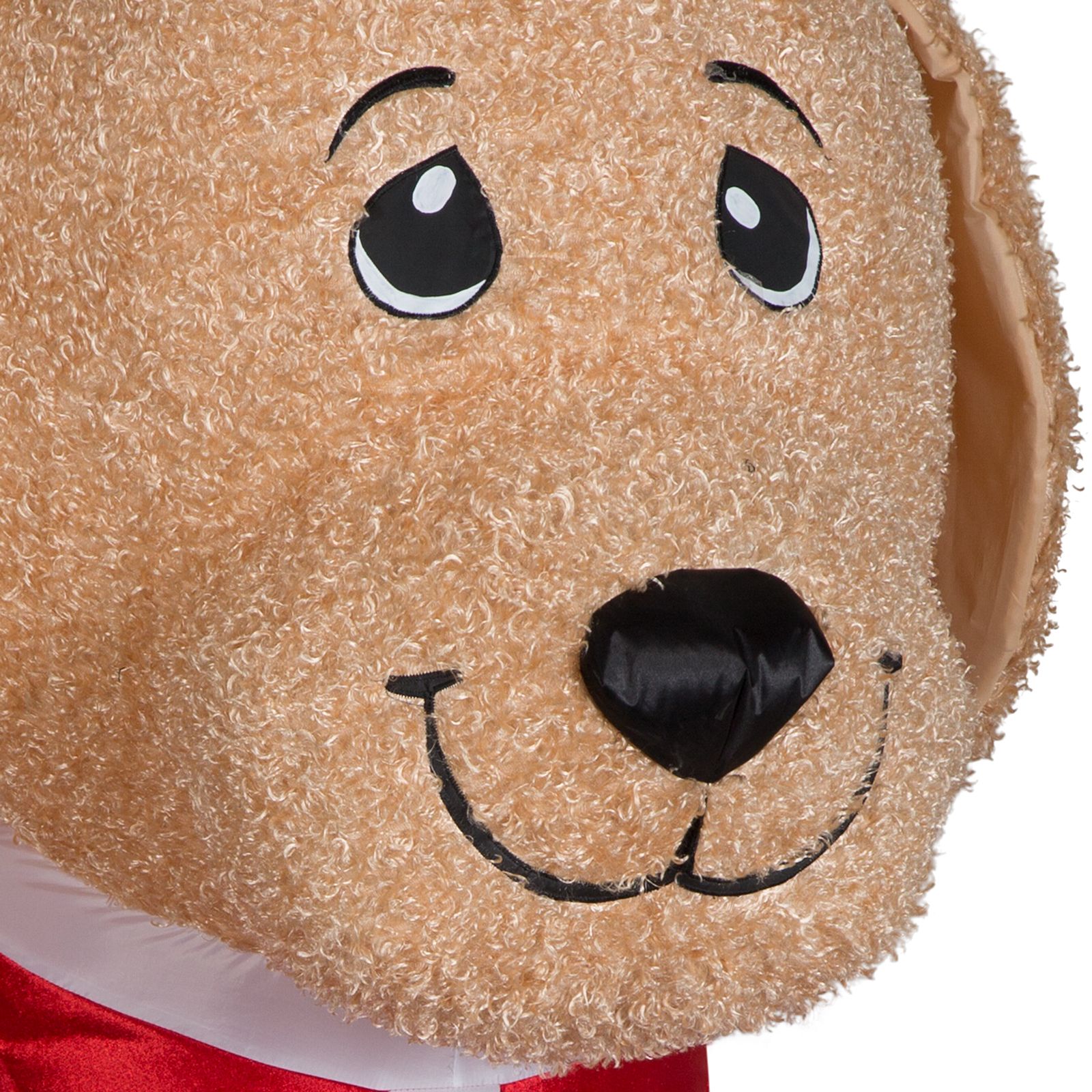 Soft and furry plush fabric Lights up Self-inflates in seconds for easy setup and deflates for easy storage Stakes and tethers for outdoor setup Includes Airblown inflatable luxe golden retriever, instructions, stakes, and tethers