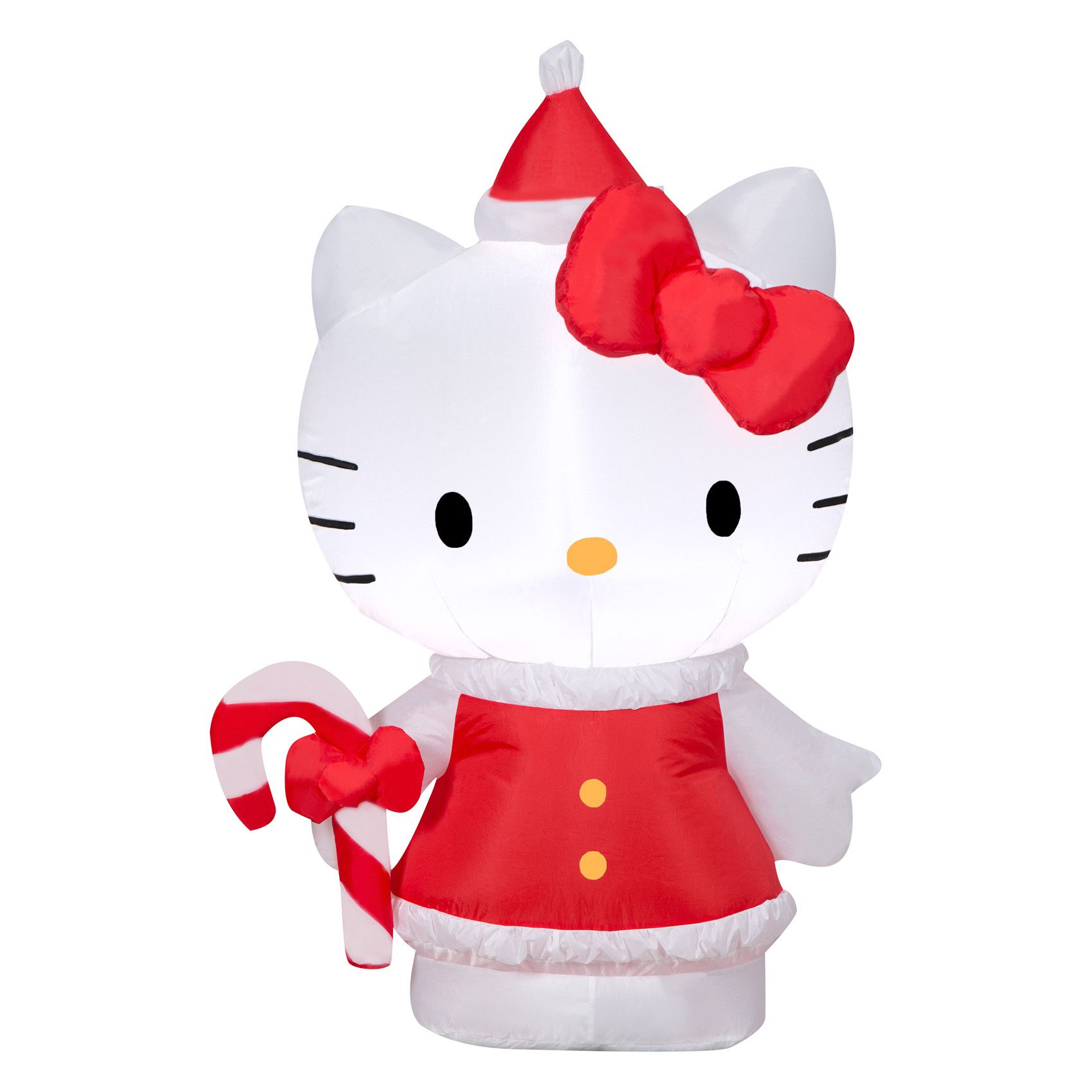 Celebrate the season with an adorable Airblown Inflatable Hello Kitty. Styled in a red holiday dress and Santa hat with a matching red hair bow, this Hello Kitty Christmas inflatable makes a delightful addition to your indoor or outdoor Christmas decorations. Set up is in a snap for the easiest decorating ever. Just plug it in, stake it down and watch the magic unfold. Be the talk of the block with a Hello Kitty Christmas inflatable. Includes everything needed for easy setup.