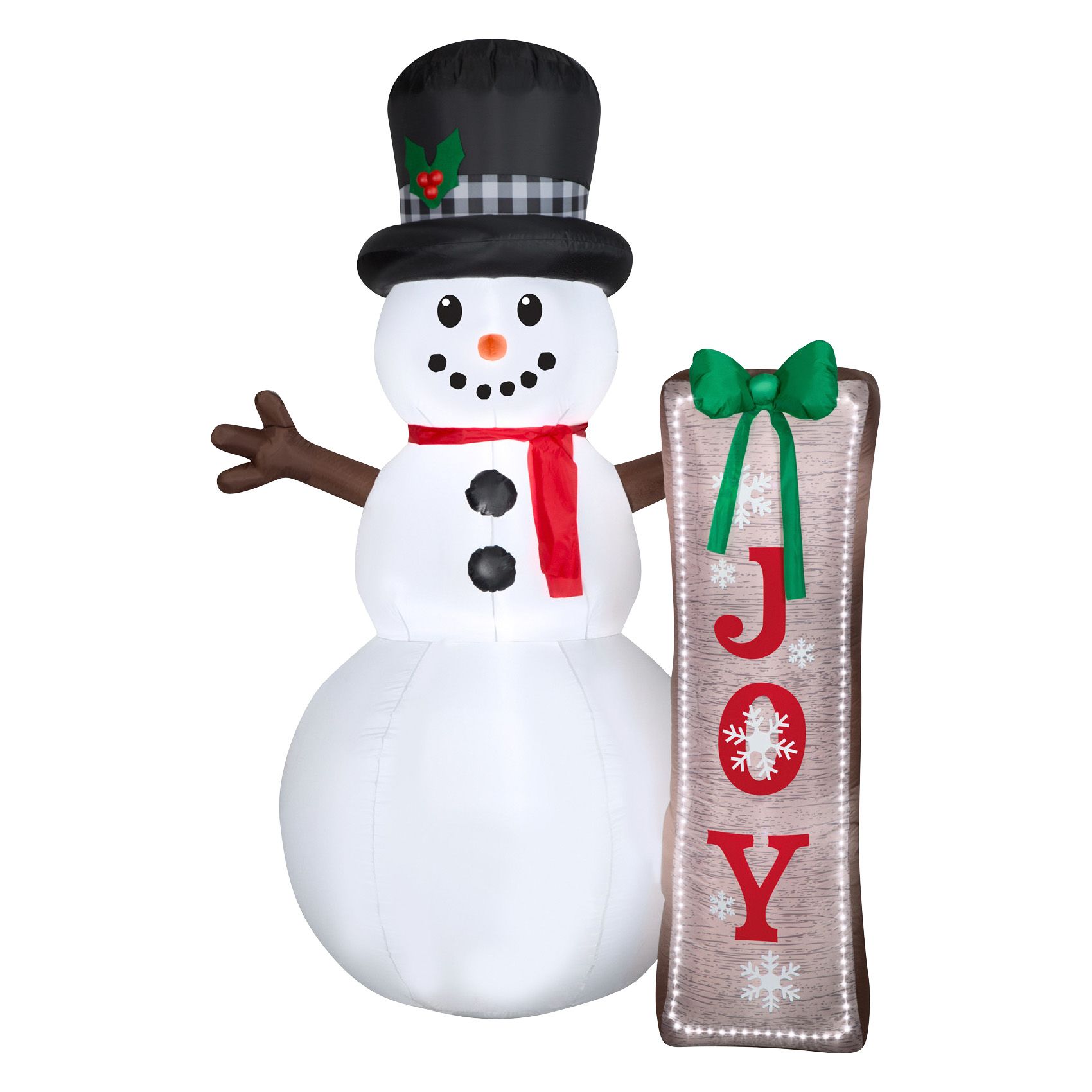 Make an eye-catching addition to your Christmas decorations with an Airblown Inflatable snowman. Wearing a top hat and red scarf, our snowman stands next to a tall "Joy" sign for a spectacular display. This charming Airblown Inflatable sets up in a snap for the easiest Christmas decorating ever. Be the talk of the block with an inflatable snowman.