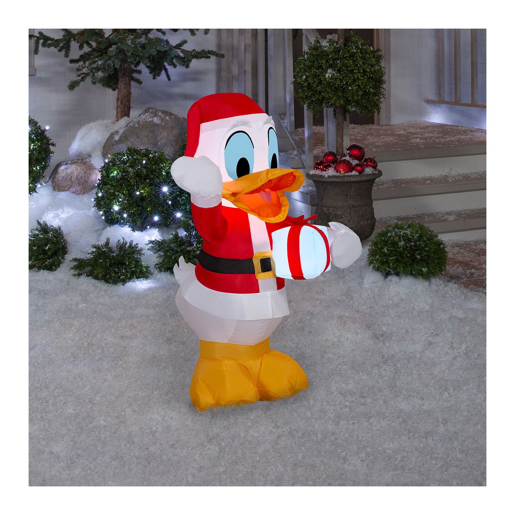 Gemmy Christmas Inflatable Donald Duck in Santa Suit with Gift Box
