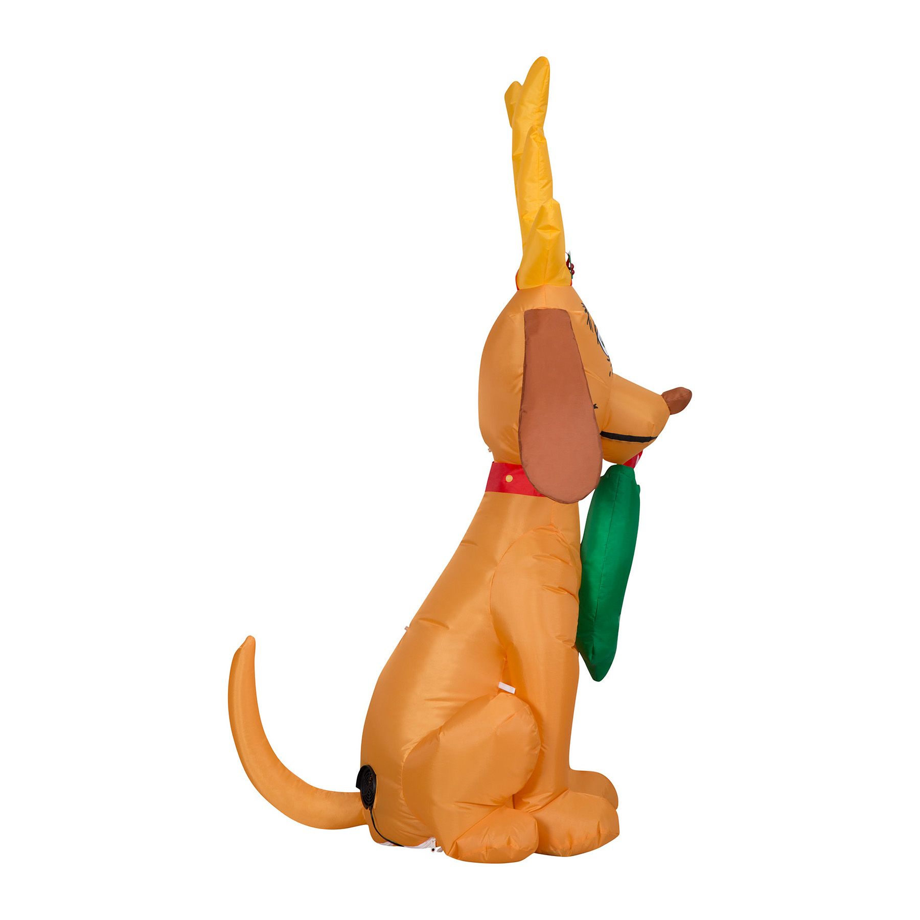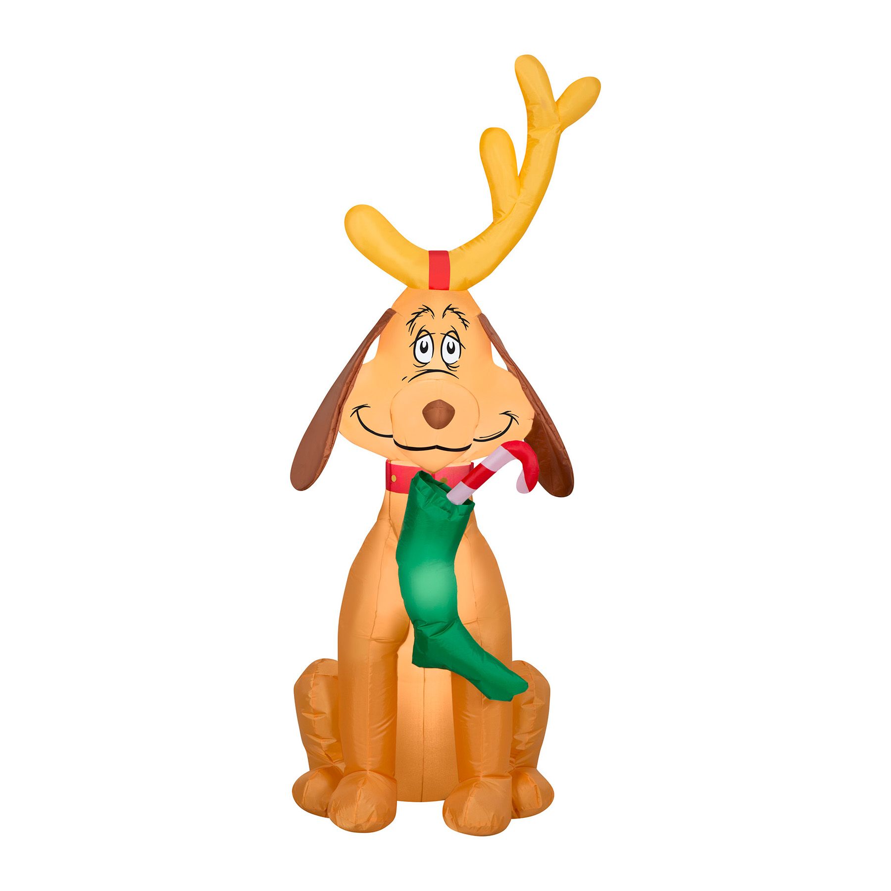 Deck the yard with an airblown inflatable Max. The Grinch's trusty dog Max wears his iconic single antler in this charming Grinch Stole Christmas inflatable. Accented with a green stocking and candy cane, this Max inflatable makes an eye-catching addition to your indoor or outdoor Christmas decorations. Set up is a snap for the easiest decorating ever. Just plug it in, stake it down, and watch the magic unfold. Display this Grinch Christmas inflatable as a standalone or combine it with other airblown inflatables to create a custom scene. Includes everything needed for easy setup.