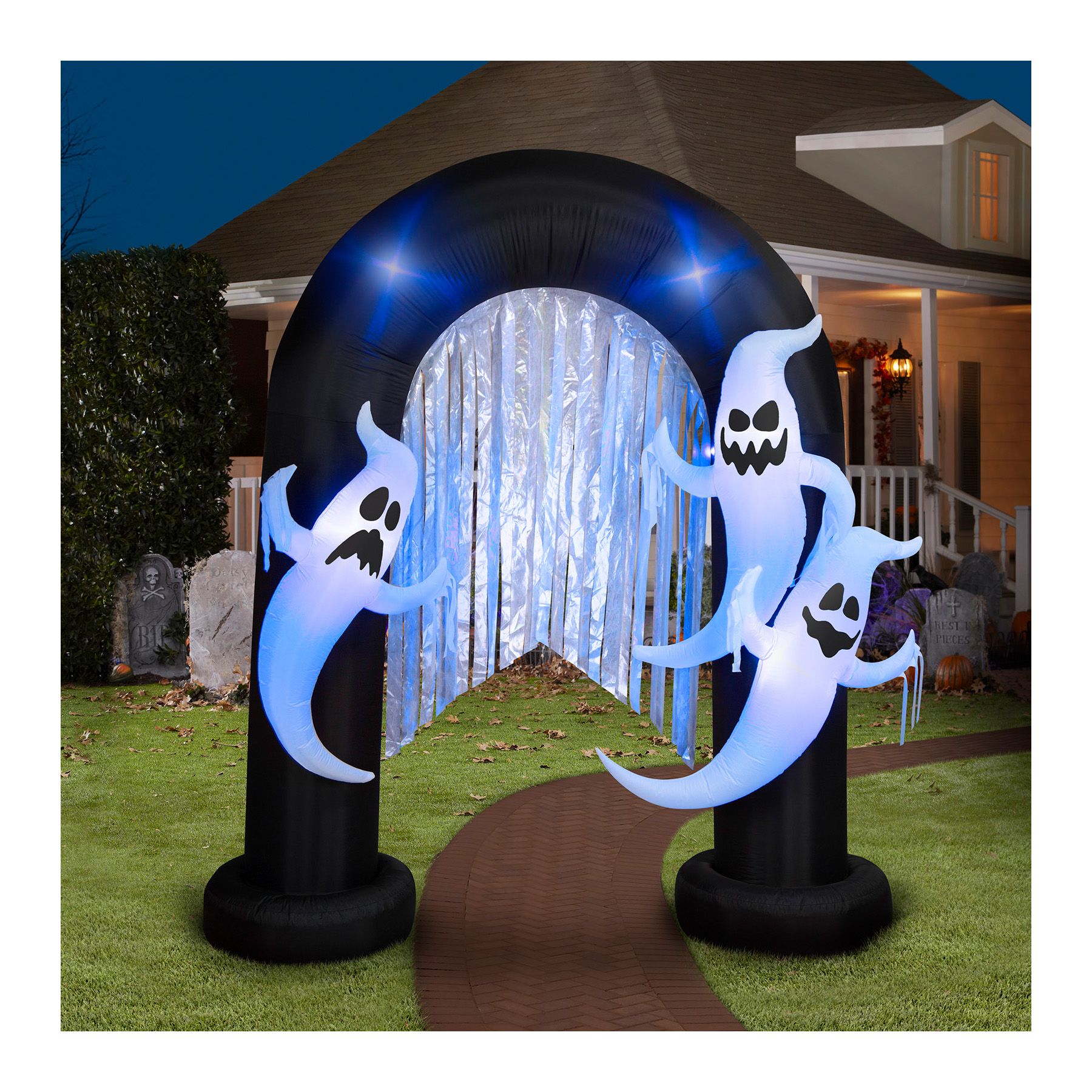 Gemmy Halloween Inflatable Ghost Archway with Flickering Black Lights and Metallic Streamers