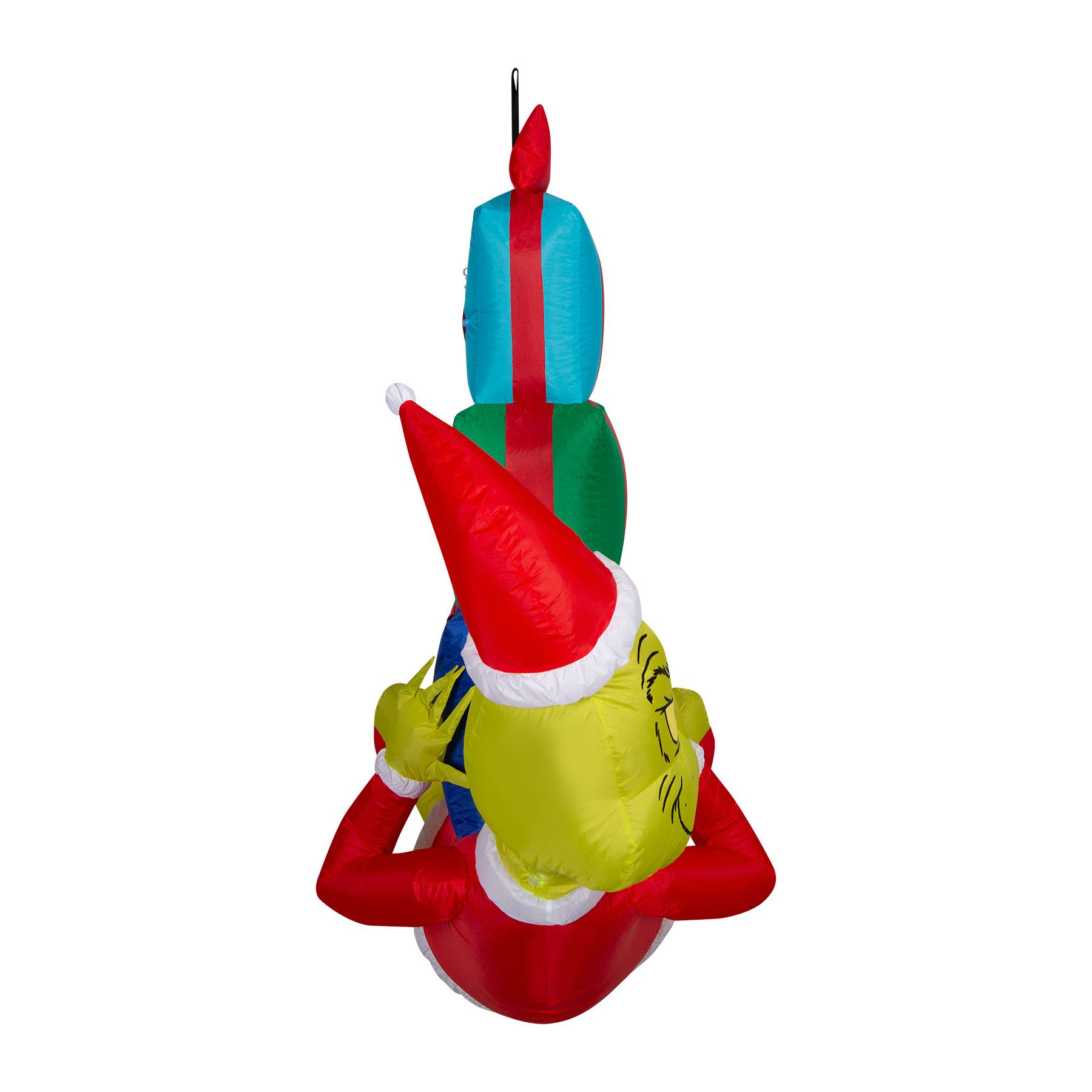 Gemmy 4' Hanging Christmas Inflatable Grinch with Stack of Presents