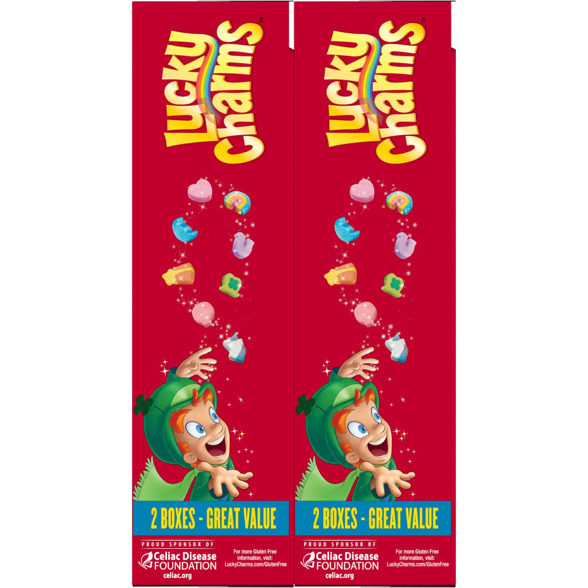 Blending delicious frosted oats with charming marshmallows, General Mills Lucky Charms 46 Oz. Cereal makes for a scrumptious breakfast or snack. It's gluten-free, a good source of calcium and fortified with 12 vitamins and minerals to help support good health.