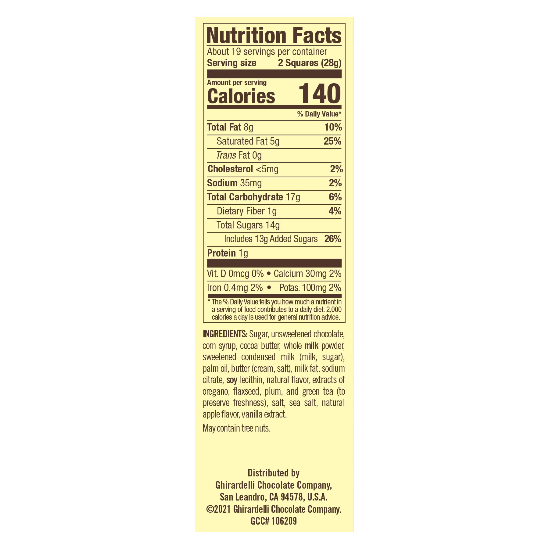 May Contain Tree Nuts. Contains Soy and Dairy.