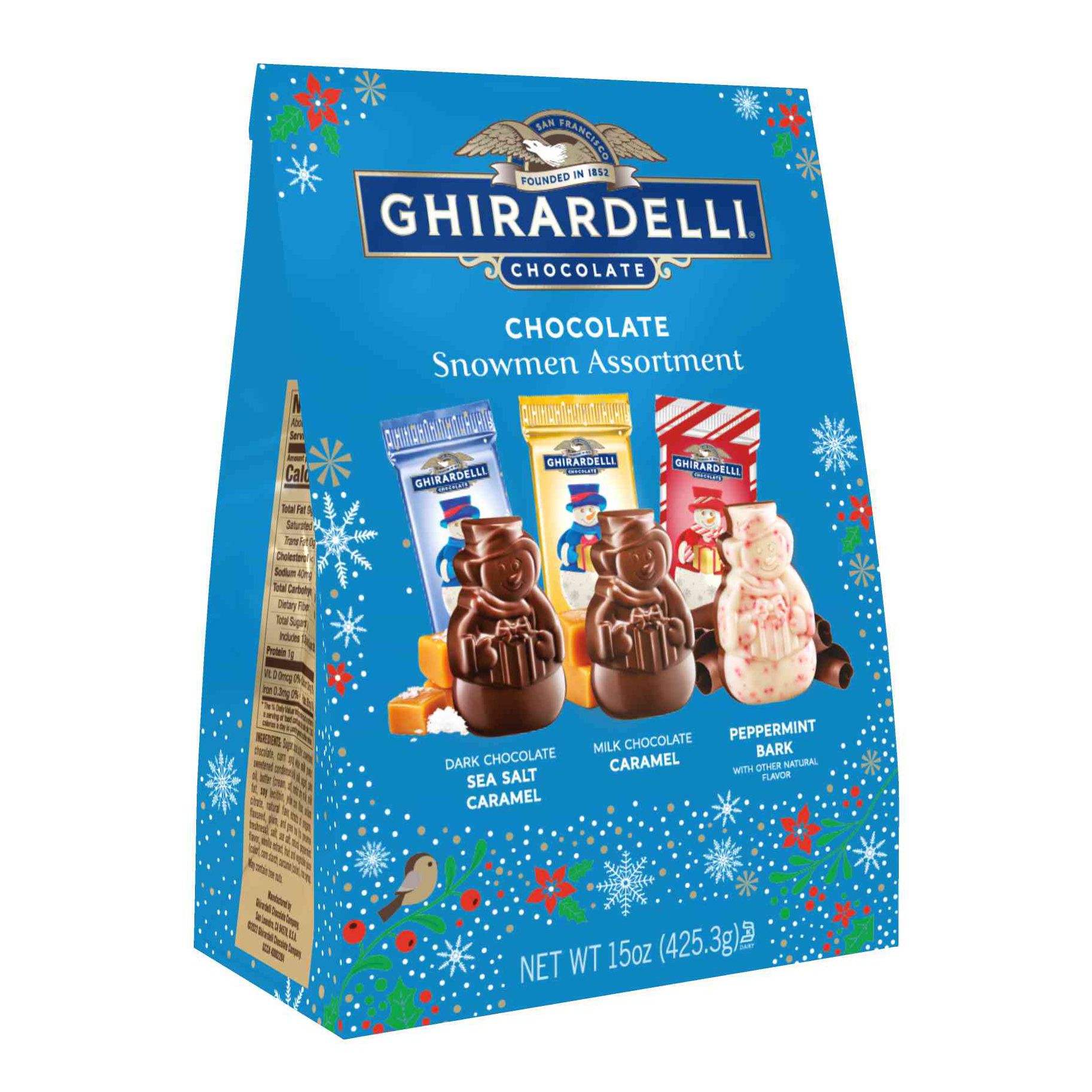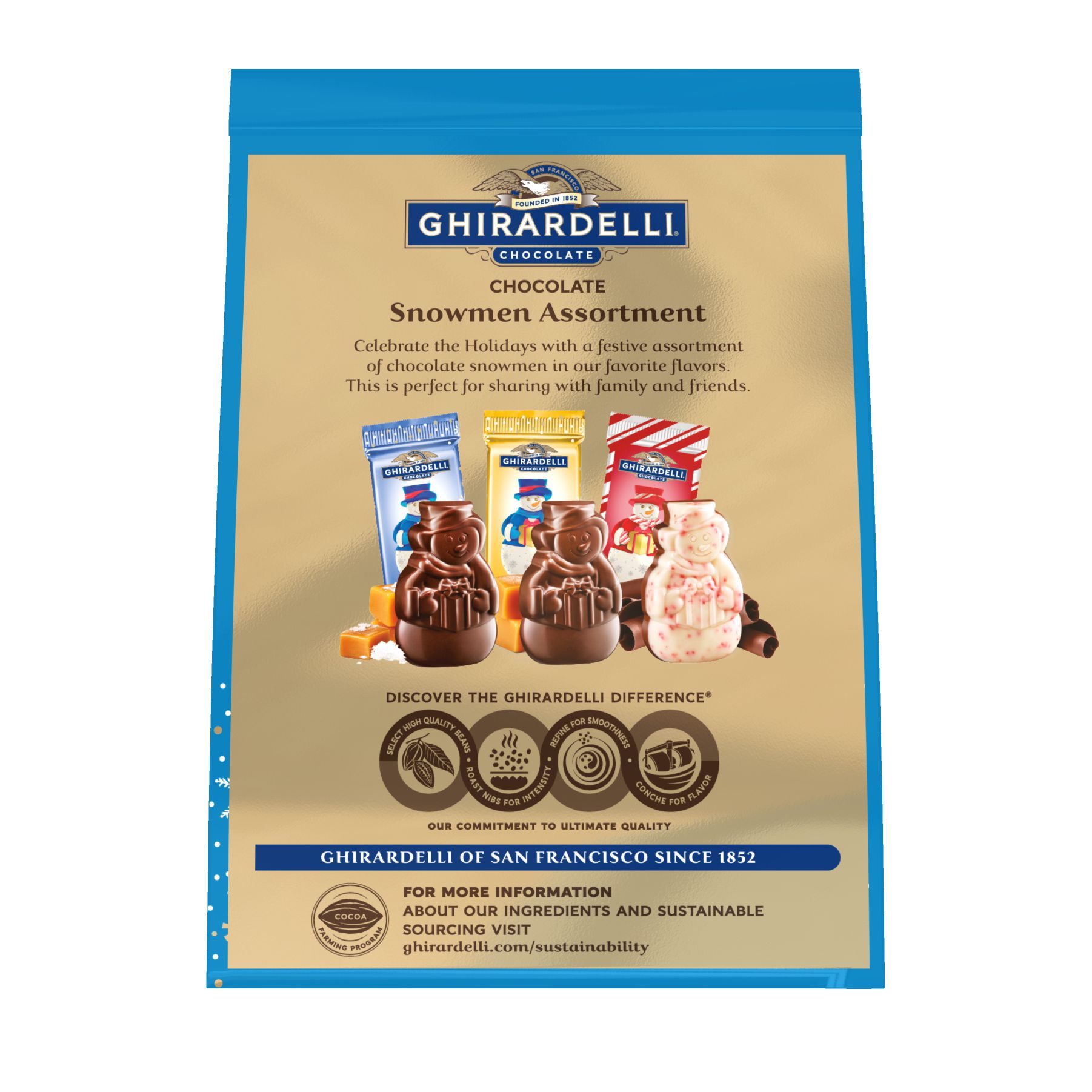 Create special memories with the Ghirardelli Assorted Snowman bag. This bag of individually wrapped Ghirardelli chocolate squares is perfect for gifting, entertaining and personal enjoyment. Filled with luscious caramel, these slow-melting milk chocolate Ghirardelli chocolates are the perfect treat for any time of day. Individually wrapped chocolate squares are easy to share or enjoy one at a time.