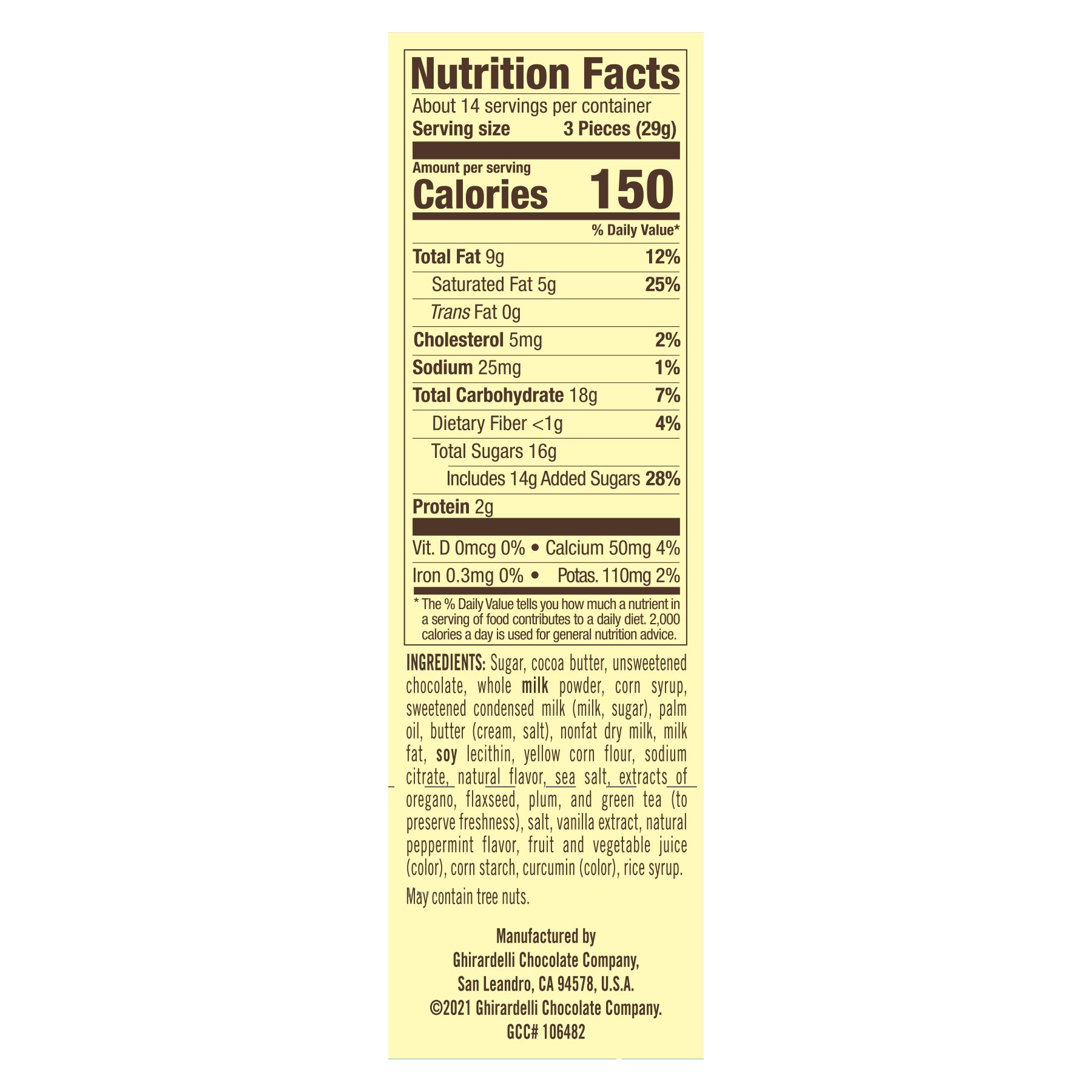 May Contain Tree Nuts. Contains Soy and Dairy.