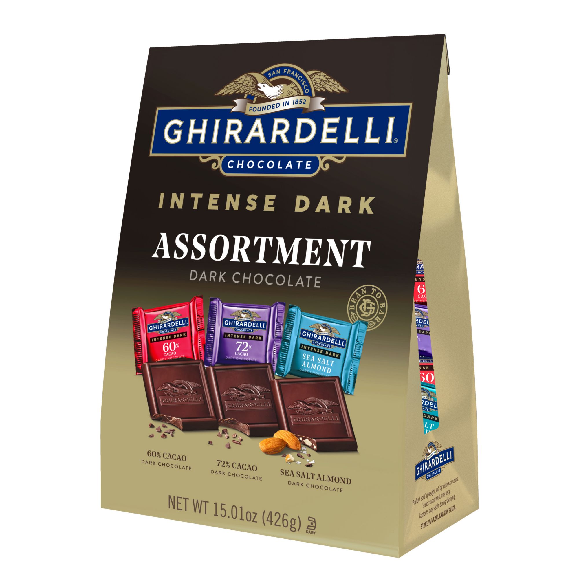 Ghirardelli Intense Dark Chocolate Premium Chocolate Collection delivers the perfect balance of intense, slow-melting chocolate and luscious fillings. The finest cocoa beans are hand-selected to create Ghirardelli's proprietary bean blend and roast them to perfection. They are then slowly blended with the purest ingredients to achieve the distinctively intense chocolate squares.