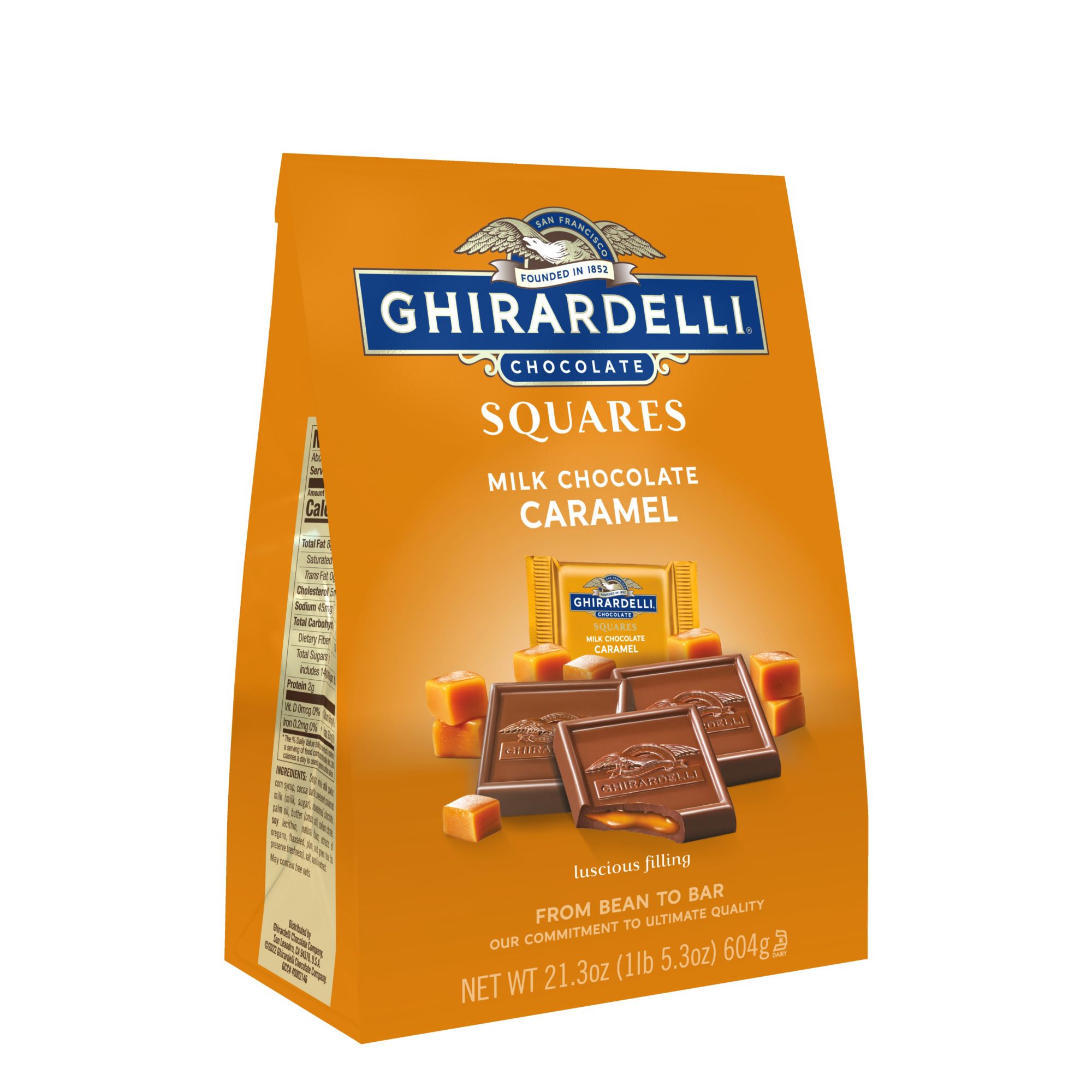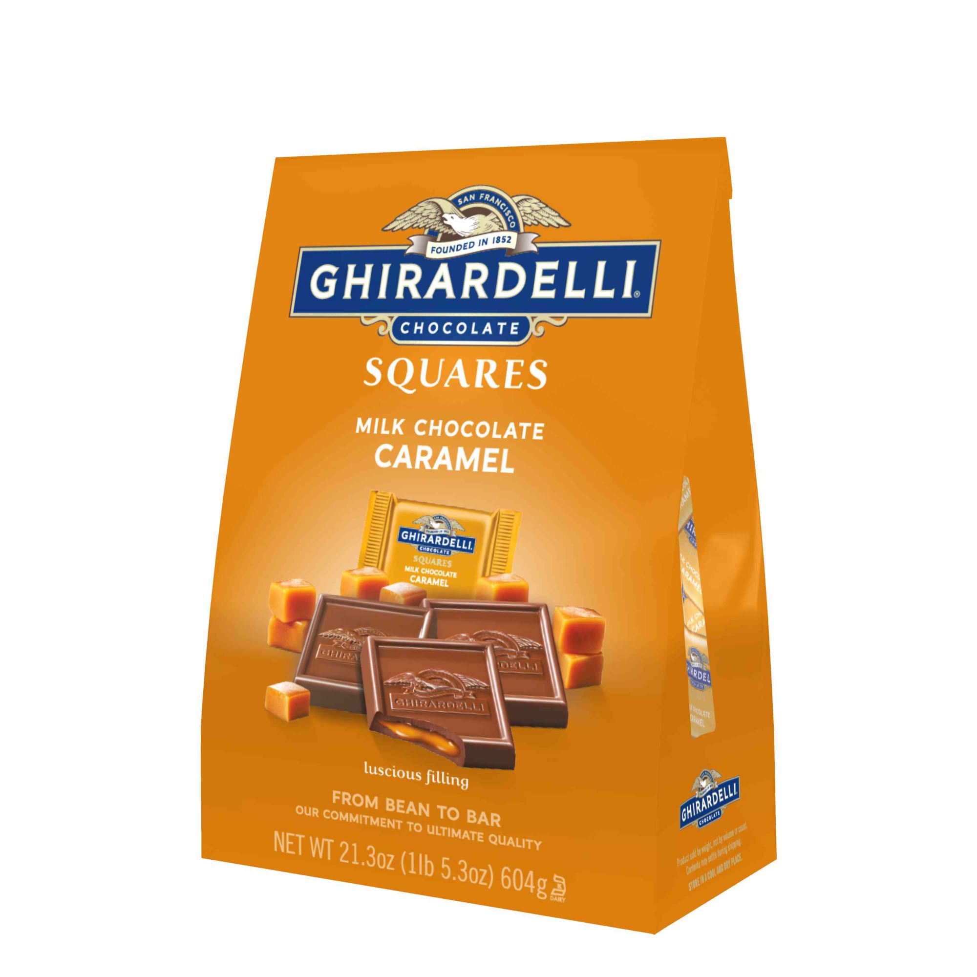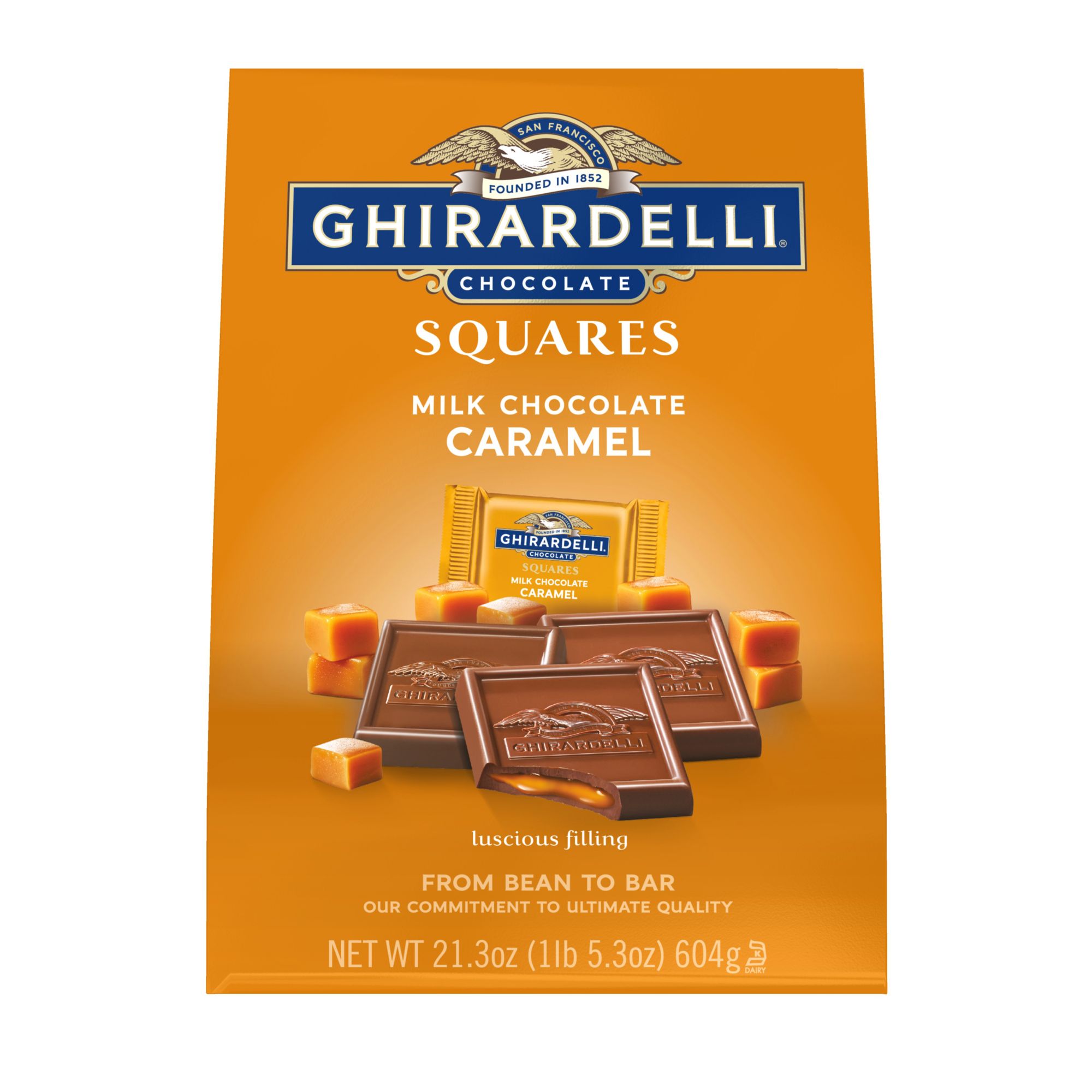 Ghirardelli's top flavor, milk chocolate and caramel squares