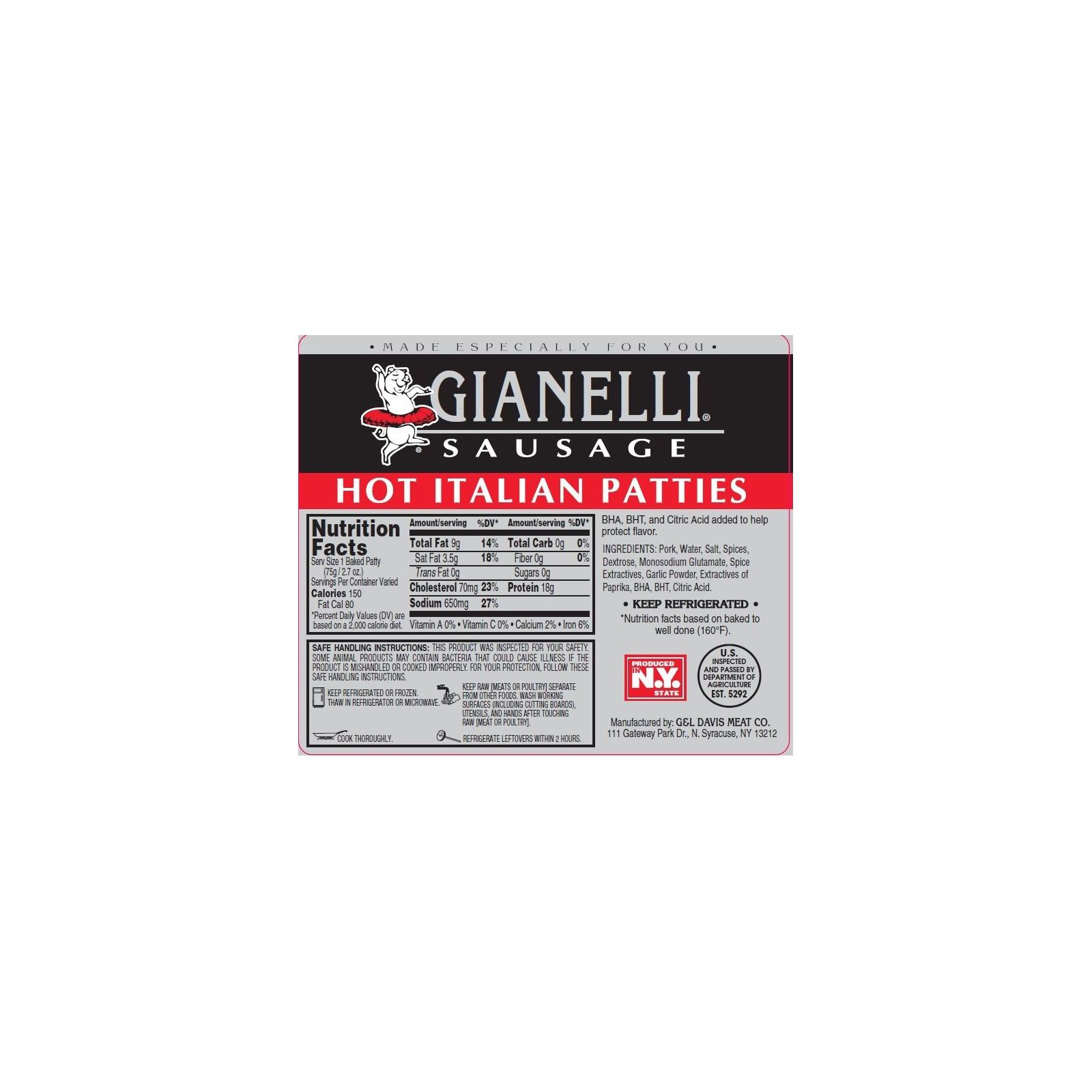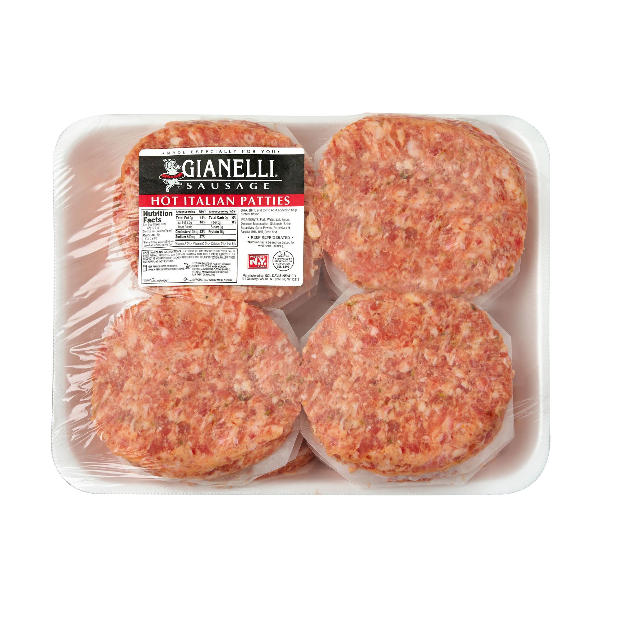 Includes 2.5 - 4.5 lbs. of Gianelli Hot Italian Sausage Patties