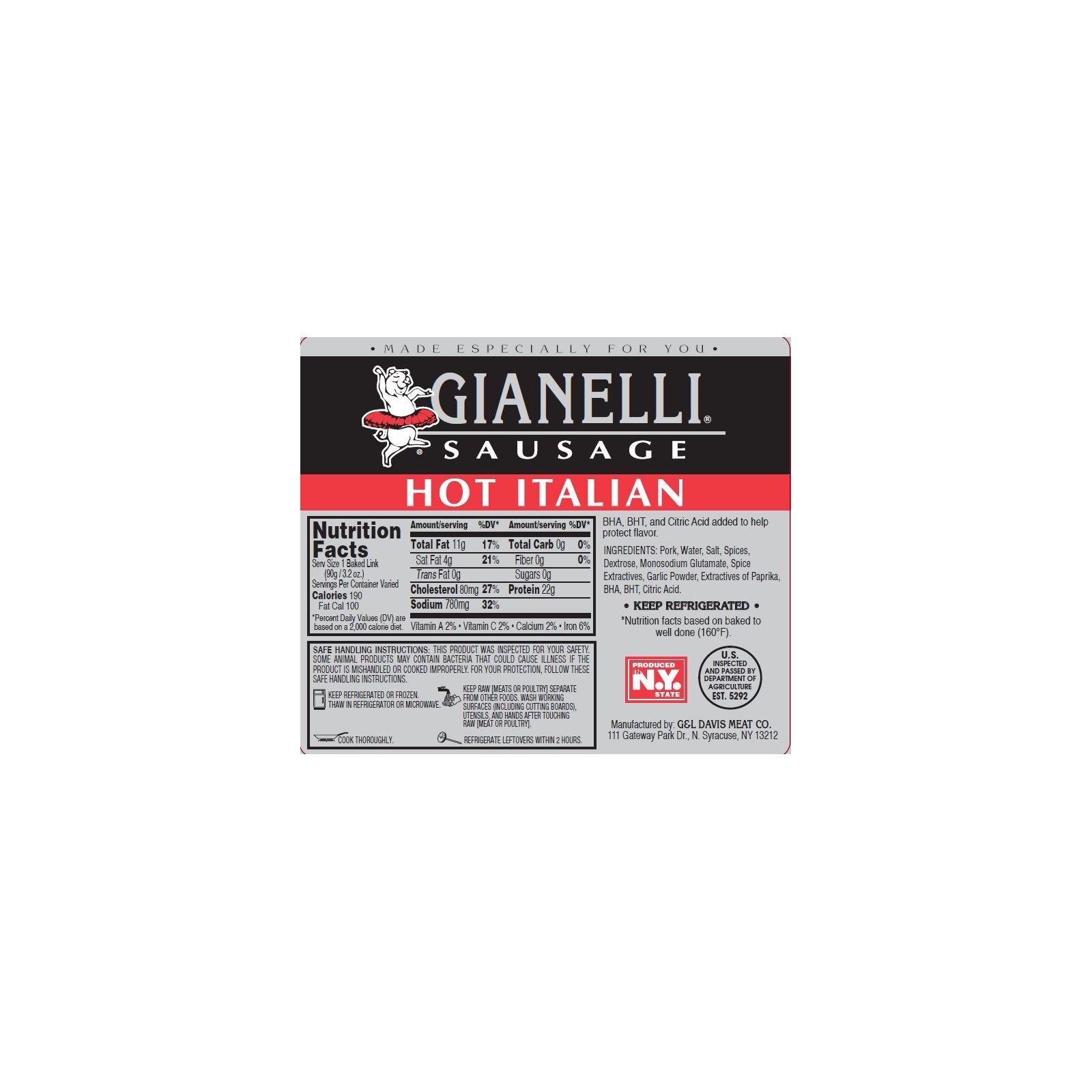This product is a delicious, old-world hot Italian sausage recipe made with freshly ground pork encased in a rich blend of classic Italian-style seasonings, herbs and bold dash of spice. Whether on a grill or in the kitchen, this zesty alternative to traditional mild Italian sausage offers a depth of flavor and a hint of heat that is ideal for a wide range of dishes from pizza and sandwiches to pasta sauce, gumbo, dips and much more. Gianelli hot Italian sausage is also gluten and soy-free, making it more widely accommodating to those with food allergies. Additionally, the lean pork specification makes for a product that is lower in fat than that found in other sausages, an attractive option for health-conscious eaters. Since 1946 this recipe has helped shape Gianelli's reputation for consistently high quality, great tasting sausage products and it continues to be one of the brand's most popular items to this day.