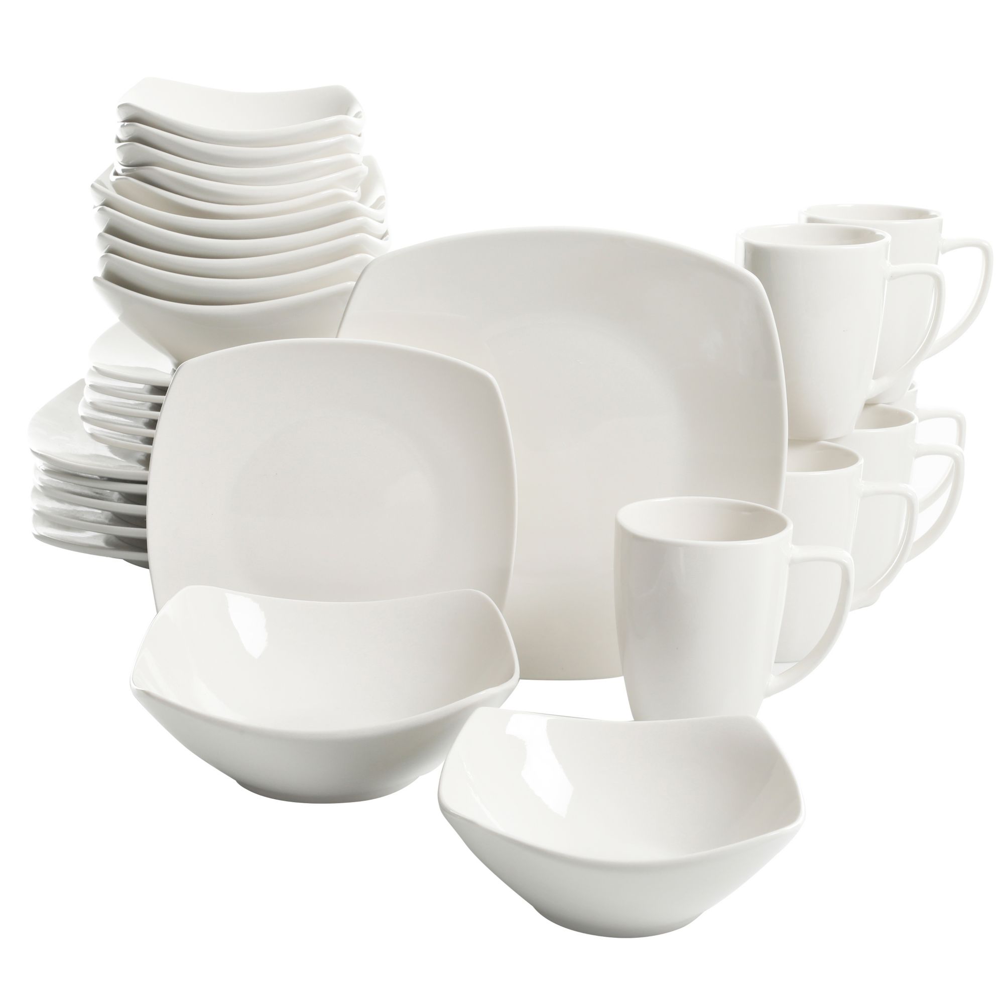 Perfect for everyday dining or any special occasion. Elevate your table setting with the Gibson Home Zen Buffetware 30-Piece Dinnerware Set. A modern square shape adds surprising tranquility along with a contemporary touch to this set of classic white dinnerware, bringing both style and versatility to everyday dining and entertaining at home.