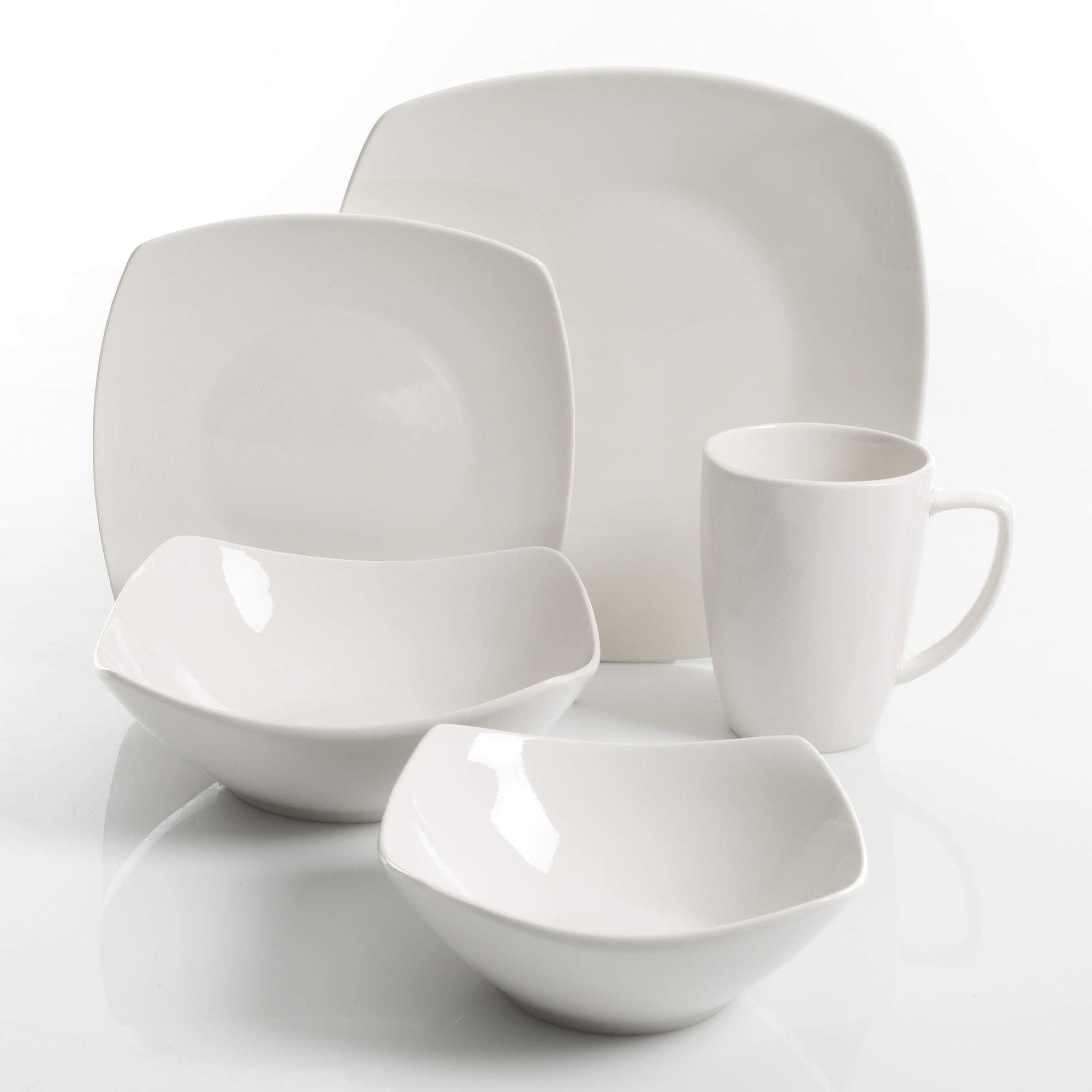 Double bowl set, classic white dinnerware with a contemporary square shape