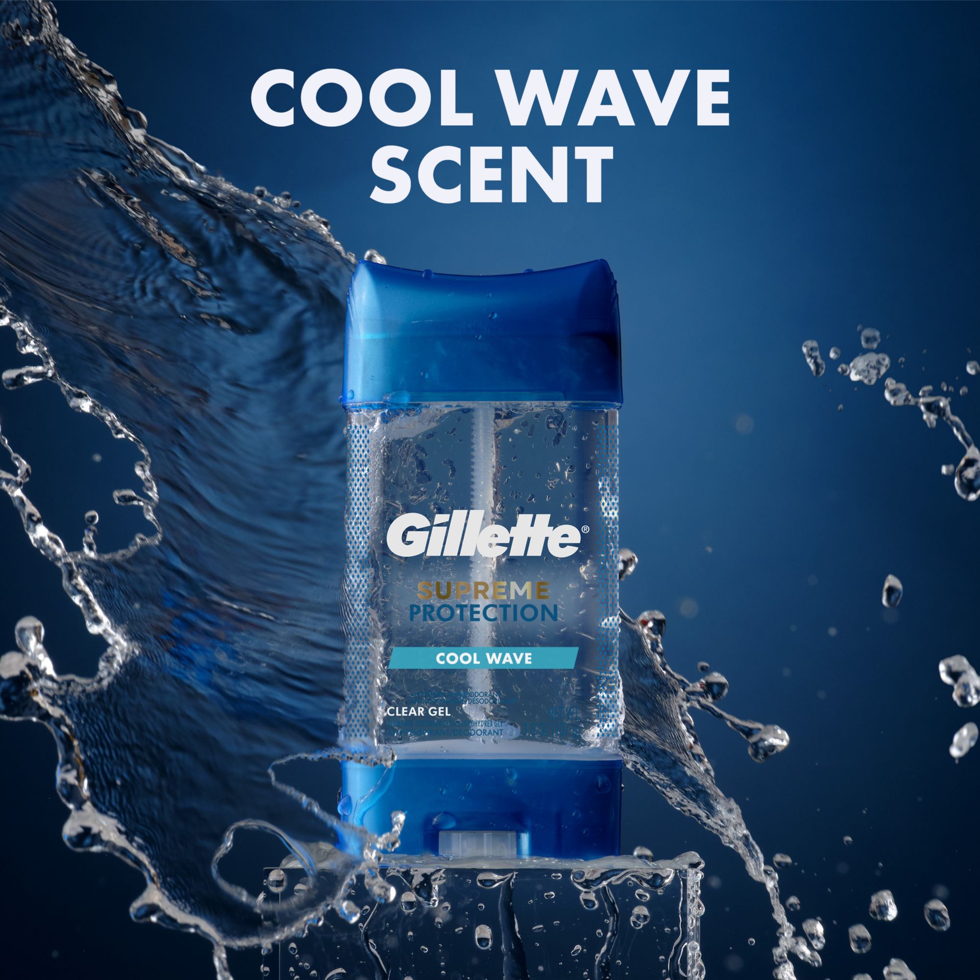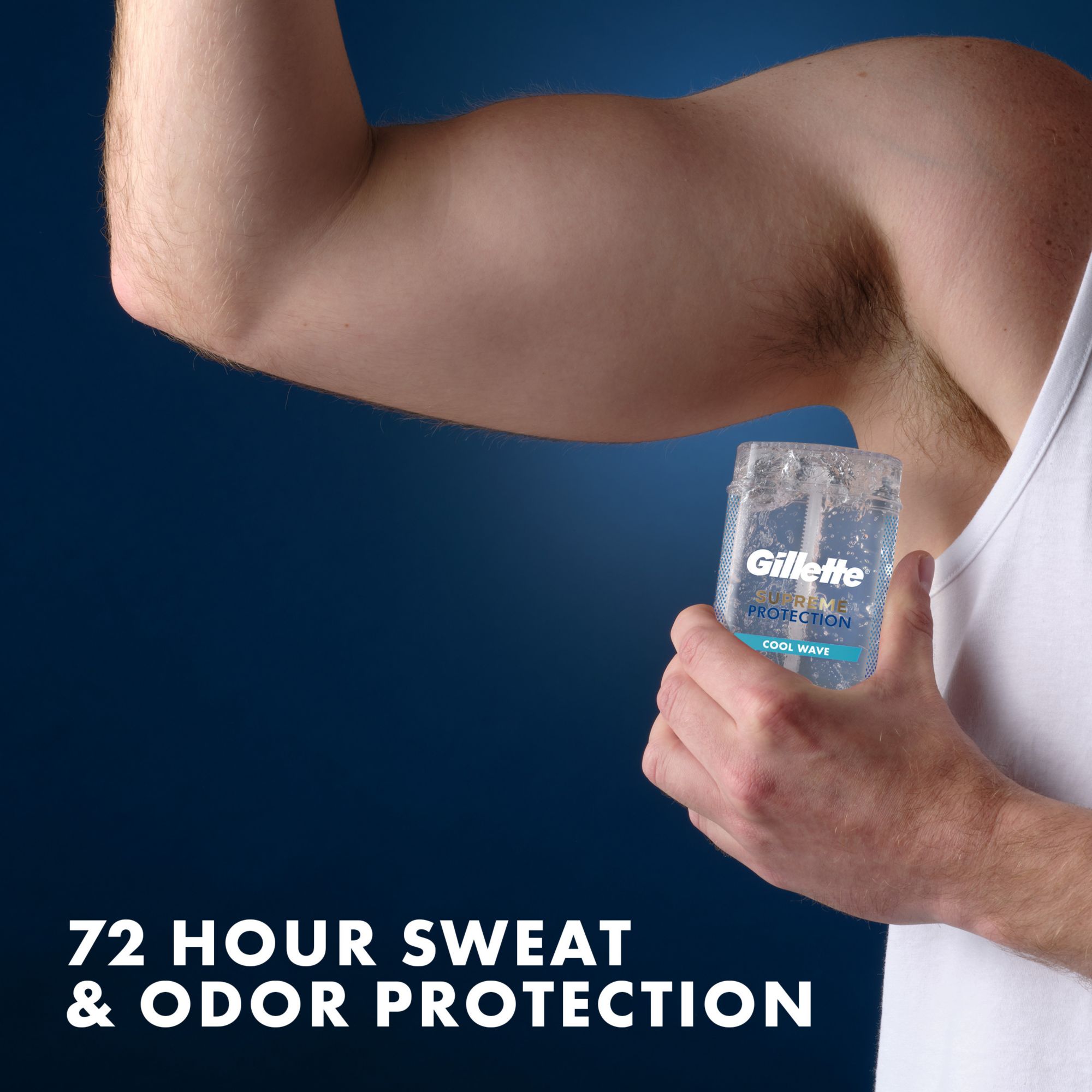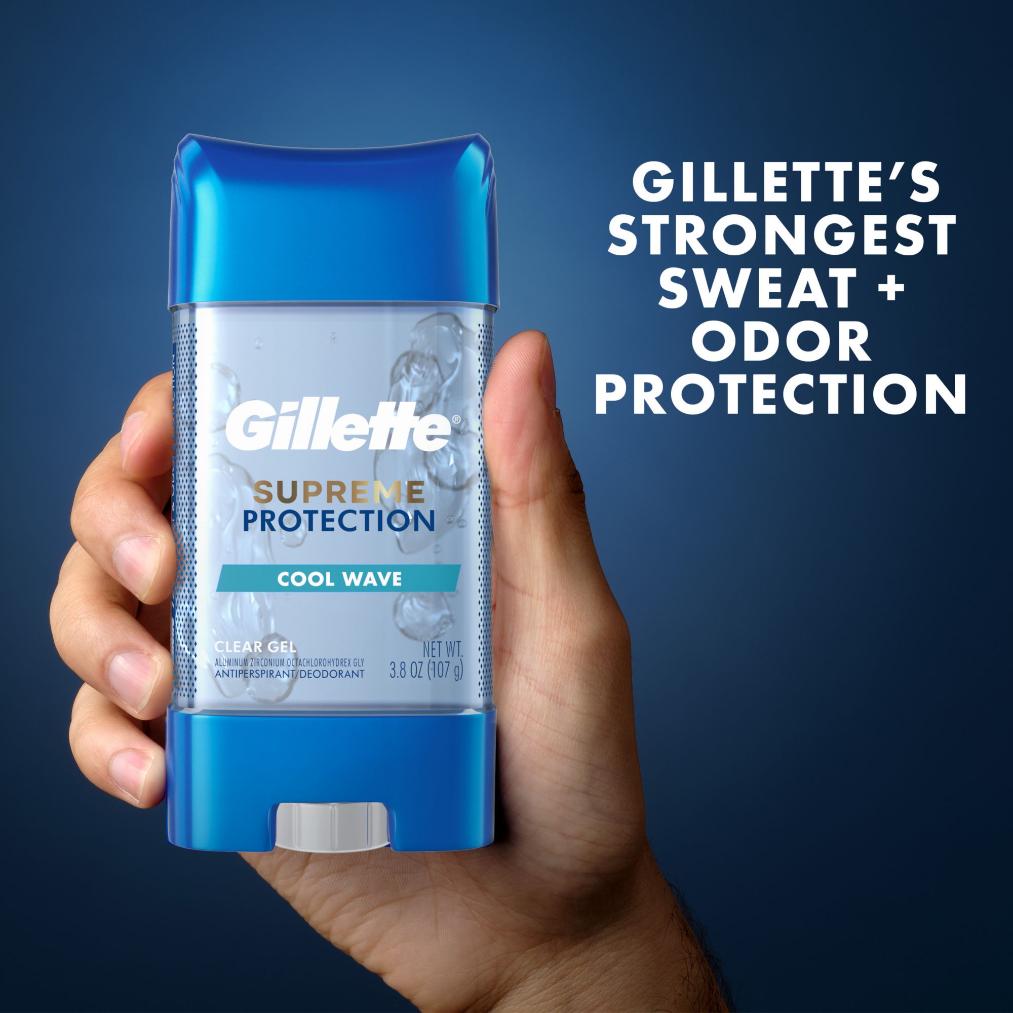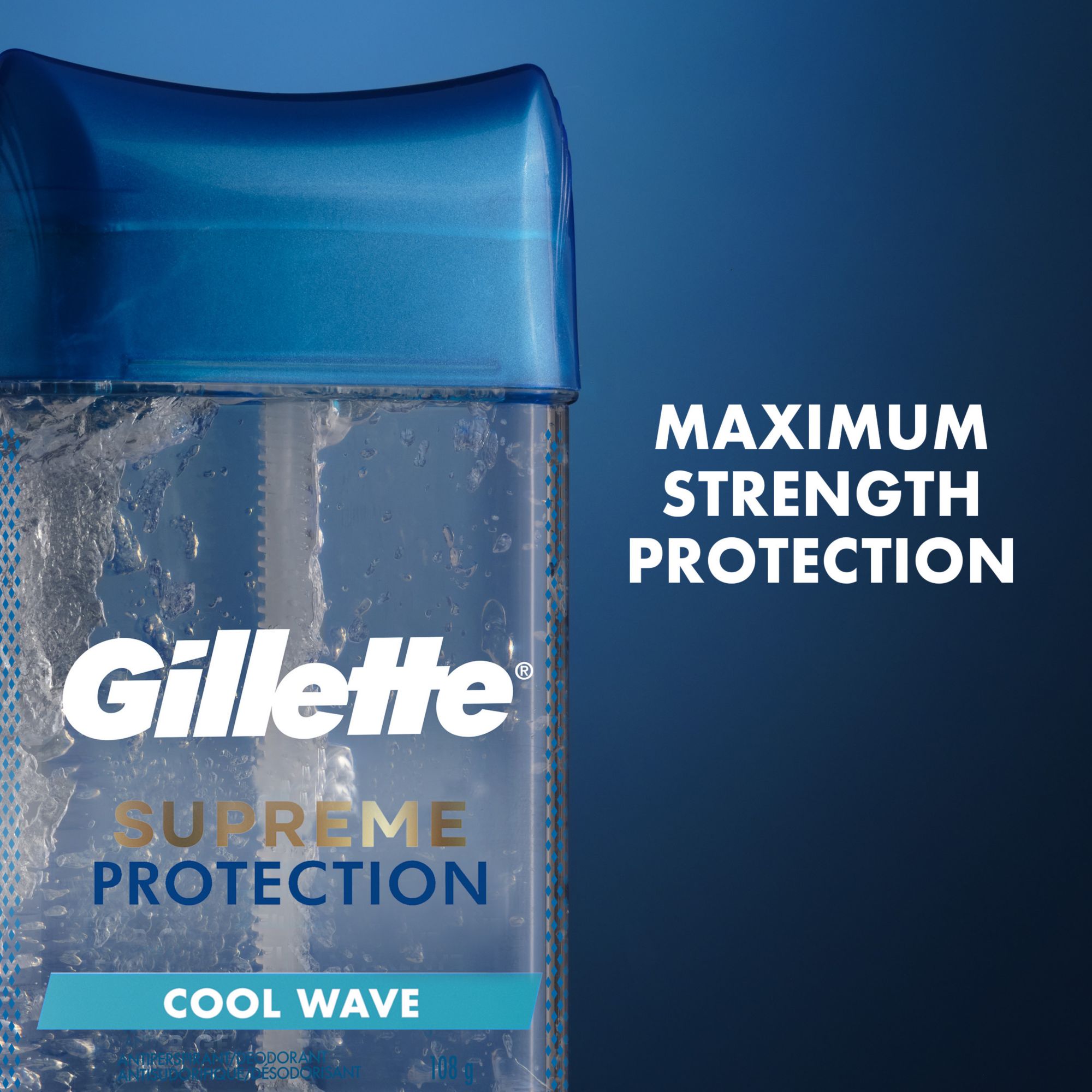 Gillette Supreme Protection Antiperspirant and Deodorant, for men, provides Gillette's strongest sweat and odor protection. It has one singular-focused goal, and that is to deliver the protection you need, one swipe at a time. Gillette Supreme Protection clear gel antiperspirant and deodorant fights 99% of odor-causing bacteria*. Precision-formulated, Gillette Supreme Protection clear gel antiperspirant and deodorant with dri-tech technology gives you instant sweat and odor protection. Gillette provides 72-hour antiperspirant protection and fights odor at the source instead of masking it. Gillette Supreme Protection clear gel antiperspirant and deodorant with scent xtend technology provides fade-resistant scent. Gillette Supreme Protection clear gel antiperspirant and deodorant is highlighted by a fresh, subtle scent that goes easy on your senses and keeps you feeling fresh all day. Engineered with skin care ingredients, Gillette's clear gel water-based formula is gentle on skin. Gillette's clear gel antiperspirant and deodorant goes on clear for anti-white mark sweat protection. Supreme Protection, Gillette's maximum strength clear gel antiperspirant and deodorant, is gentle on skin, provides a long-lasting fresh scent, and 72-hour sweat and odor protection. The Gillette Brand has inspired more than 100 years of innovation, and we're not done yet. Gillette. The Best A Man Can Get. *Prevents Growth of S. Epidermidis, S. Hominis, C. Tuberculostearicum.
